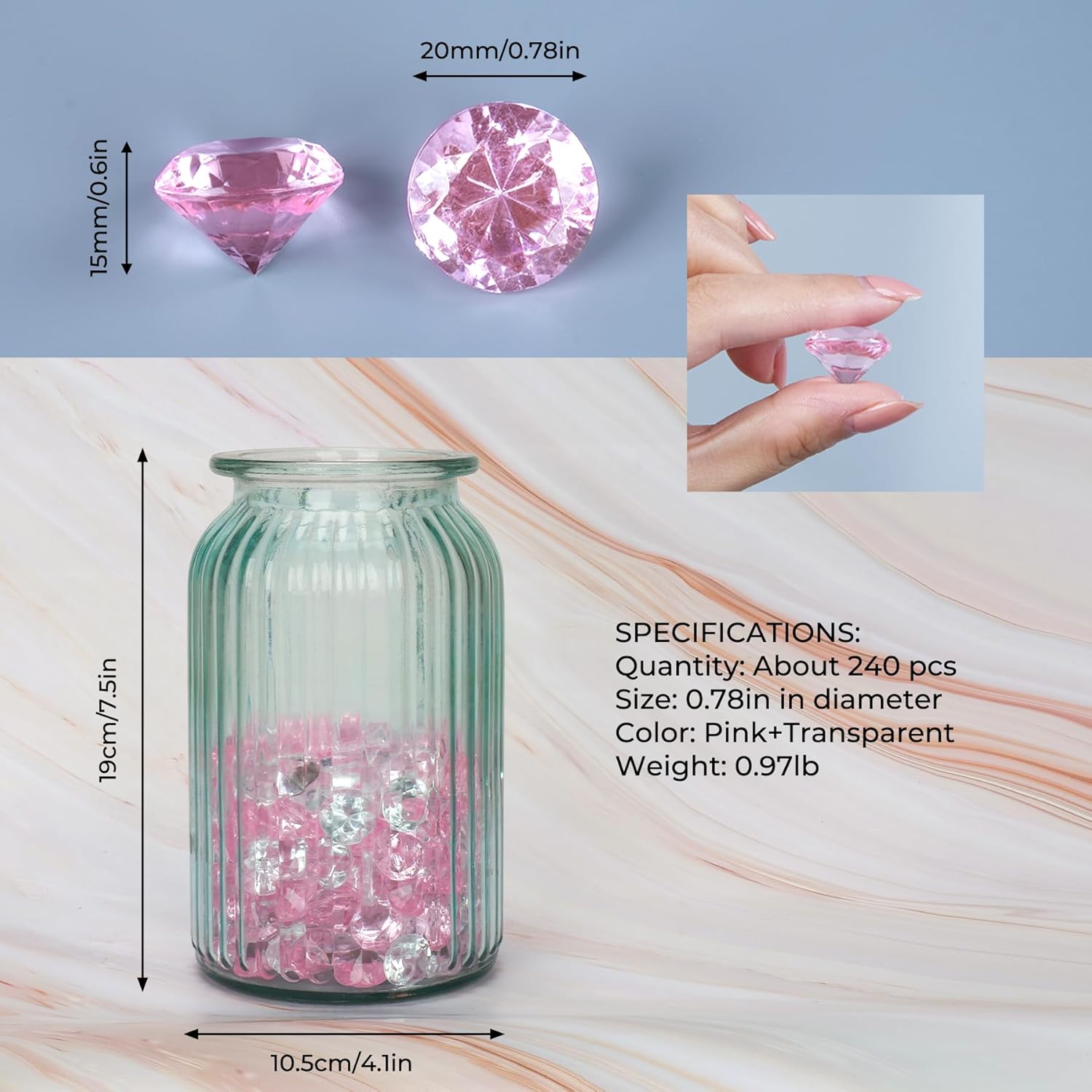 Acrylic Diamond Fake Gems Vase Filler, Babenest 240pcs 3/4 Inch Faux Diamonds Crystals Jewels for Table Scatters Wedding Party Event Arts & Crafts Birthday Decoration (240, Pink/Clear)