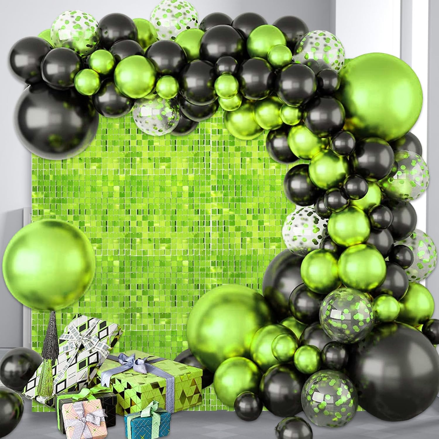 - 【Shimmer Wall Backdrops】The sequins of the green glitter wall panels will move with the wind and sparkle when the light hits them. You can match it with any balloon, wall, outdoor or indoor backdrop to a fantastic shiny photo backdrop, creating a nice shiny atmosphere for your party.