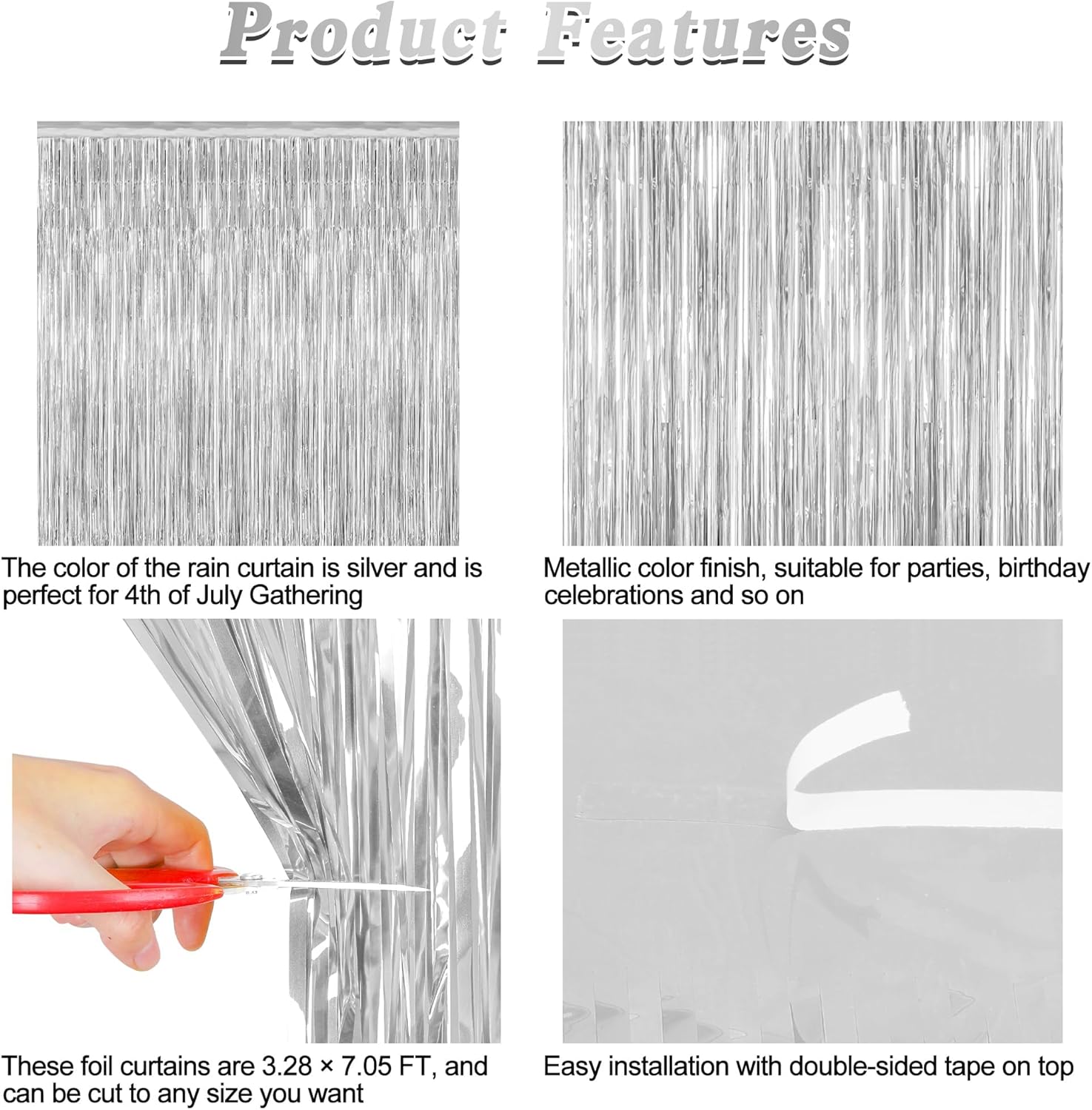 - Easy to Install: Each silver curtain comes with an adhesive strip at the top. Simply peel off the backing and stick the streamer backdrop to any smooth surface for a quick and hassle-free setup.