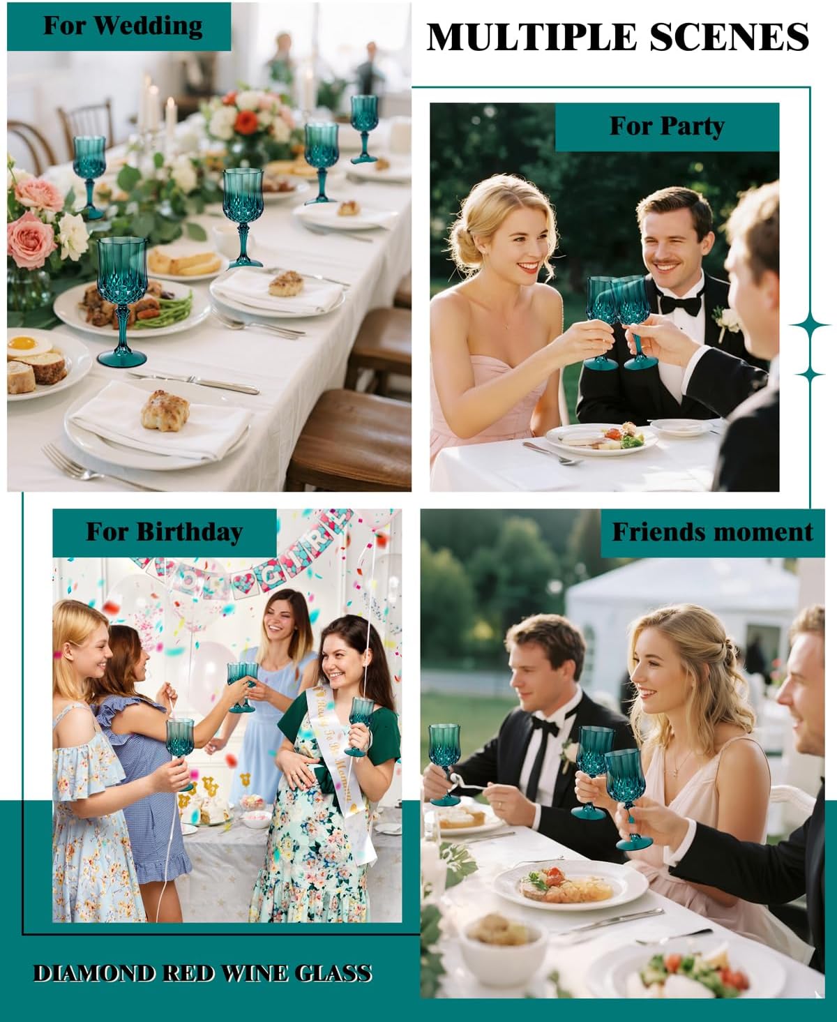 Ciaell 24PCS Green Plastic Wine Glasses - 7 Oz Plastic Goblets for Party - Green Vintage Drinking Glasses - Disposable Water Goblets Set for Wedding, Bar, Wine, Beer, Juice, Cocktail, Christmas