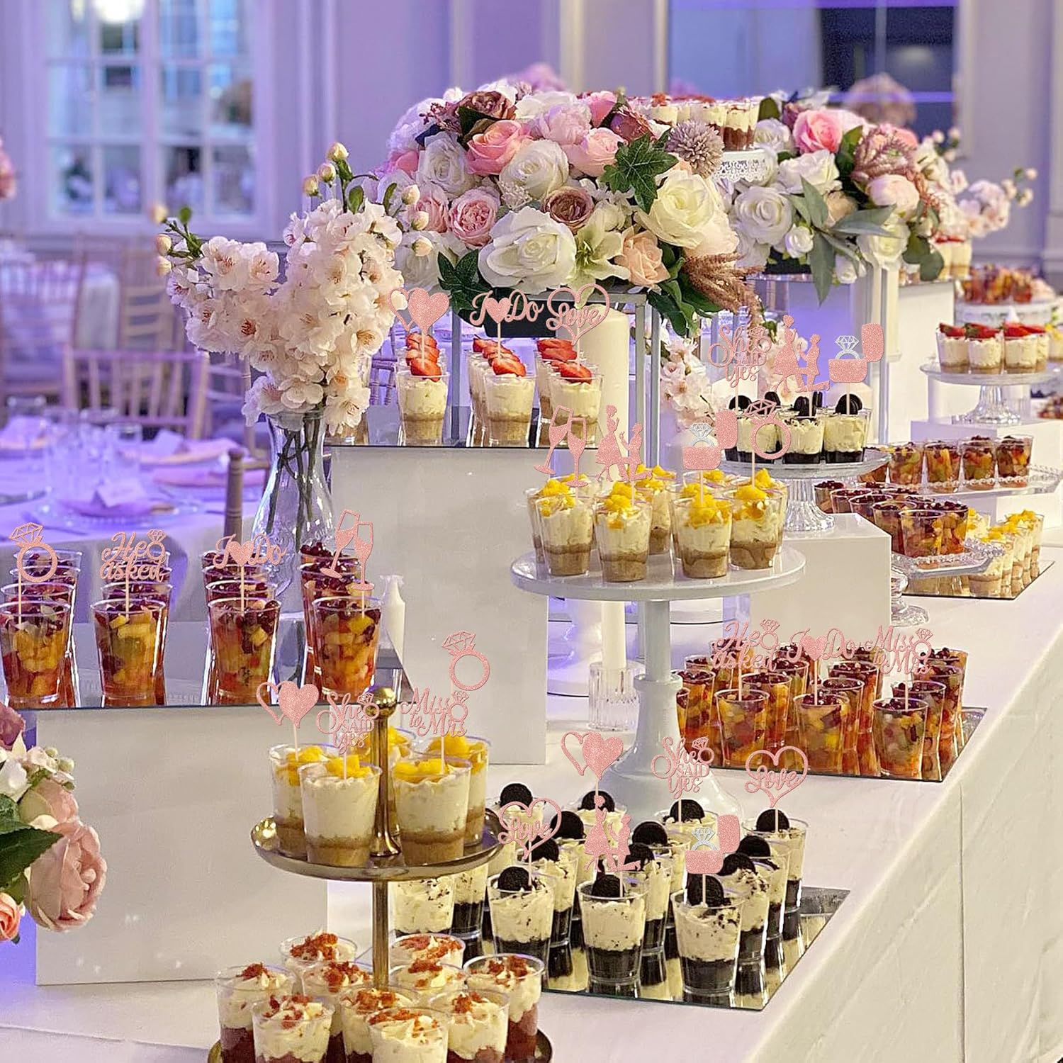 30 PCS He Asked She Said Yes Cupcake Toppers Glitter Wedding Engagement Cupcake Picks Miss to Mrs I Do Love Heart Ring Miss to Mrs Cake Decorations for Wedding Engagement Party Supplies Rose Gold