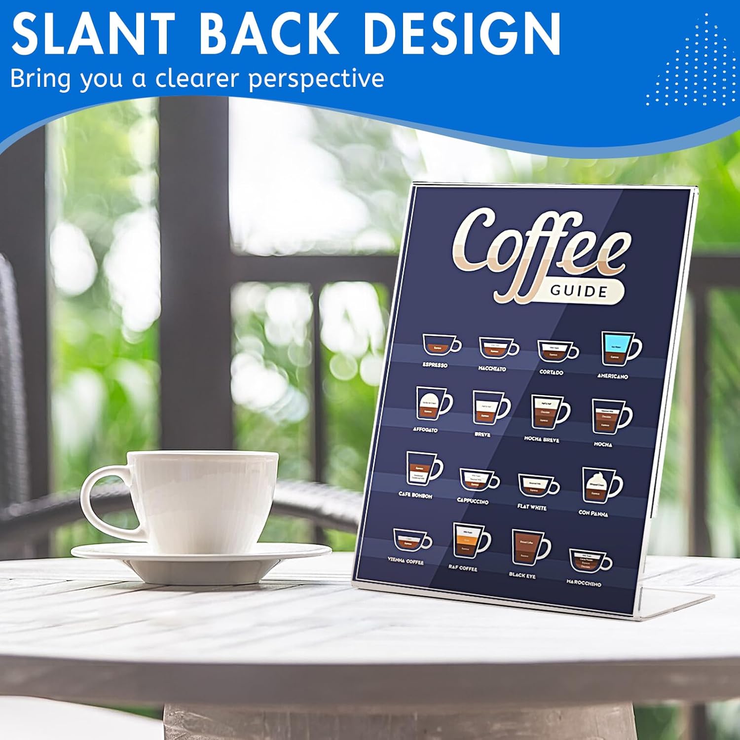 - Wide Application:The plastic sign holder 8.5 x 11 standing has a minimalist design and a stylish and practical style. Whether it's a serious office or a festive wedding, it's a perfect fit. Suitable for various occasions such as wedding table list display, dining table number placement, cafe or restaurant menu display, hotel front desk guidance, office daily file use and so on