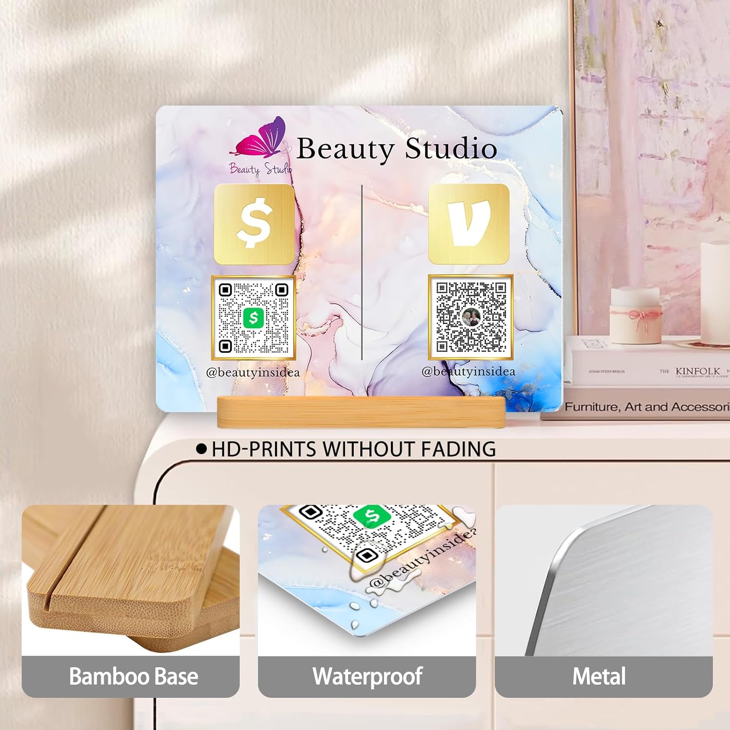- 【Custom QR Code Sign】: Simplify customer interactions with a personalized QR code sign for Venmo, Cash App, Paypal, Instagram, Facebook, or WiFi. Perfect for salons, restaurants, beauty stores, or any business, this sign makes it easy for customers to scan and pay or connect.