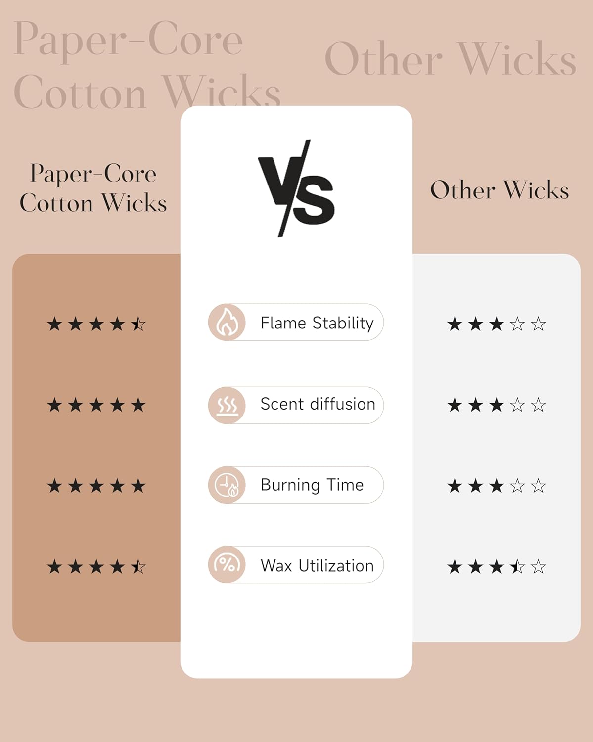 - Clean Consistent & Even Burn - Using 2 American made lead-free cotton wicks for a even burn result. They're cotton flat braid wicks with paper throughout, providing increased rigidity and burn more consistently than 100% cotton wicks. Designed to reduce carbon buildup which leads to black soot