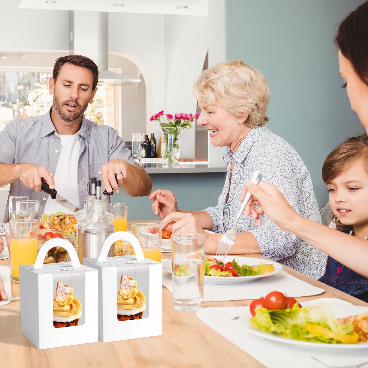 JCD 120Packs Cupcake Boxes with Window and Handle and Insert,Individual Disposable White Single Cupcakes Box Individuals Cupcake Holders White Single Cupcakes Boxes Containers (White/120Pcs)