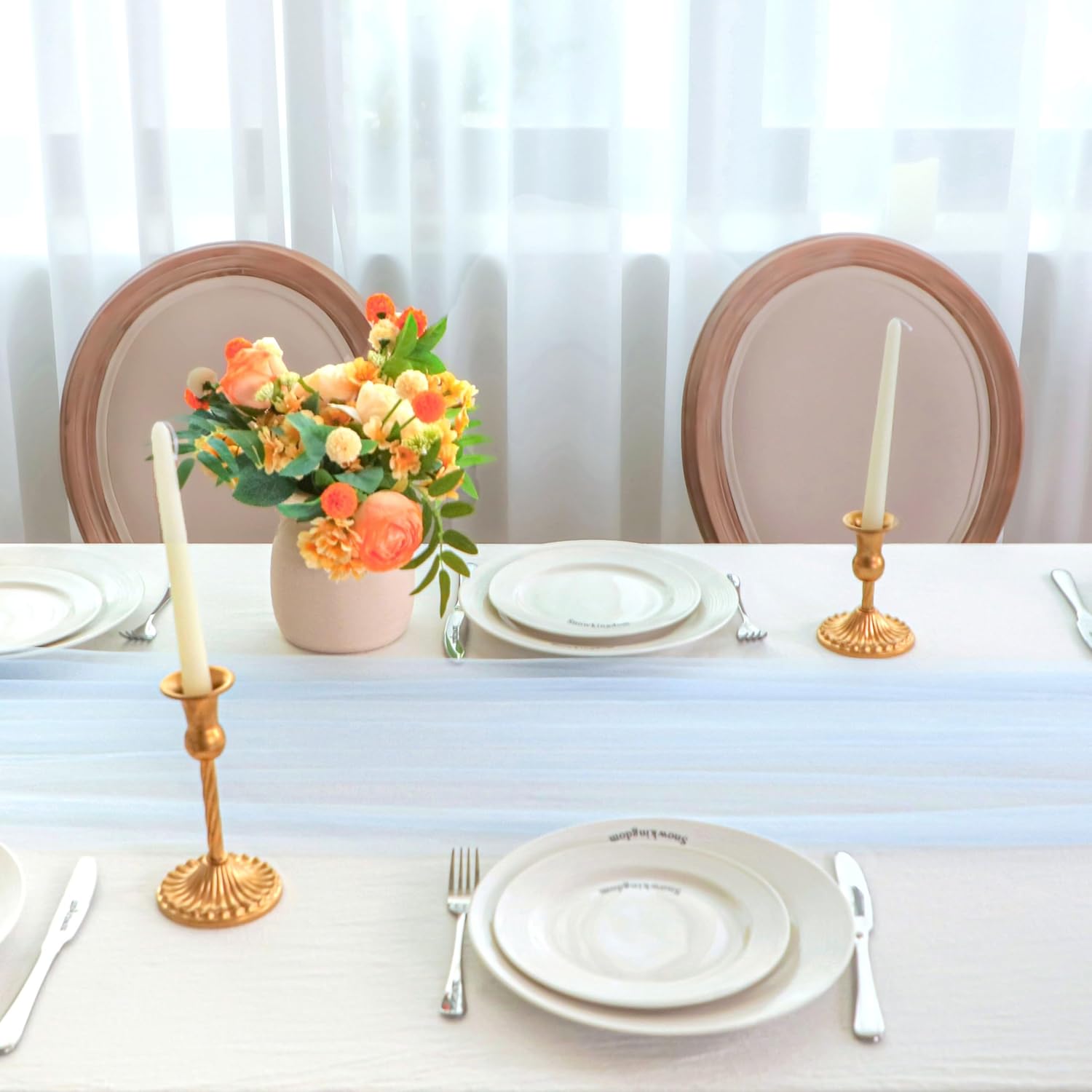 - Package: 1 Pc 27.5x120 inches light blue cheesecloth table runner, drapes a beautiful gauze curtains over your tabletop for romantic memories. Easily pairs with any holiday or party table decorations