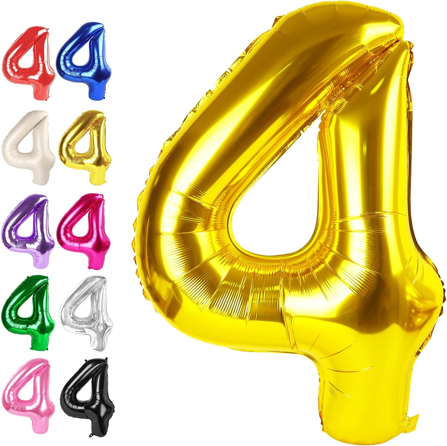 - 1.Noble Romantic Gold Number Balloons: You will receive an uninflated 40 inch 4 gold number balloon. Balloons are always the best statement of romance surprise. Big four balloon symbolize eternal magical, adding glamour to gold birthday parties. Elegant gold and huge size make gold number 4 balloon a highlight of special parties. Choose one or more numbers from 0-9 number balloon, and use 4 14 24 34 40 44 54 64 84 94 birthday balloons to create a lively charming party!