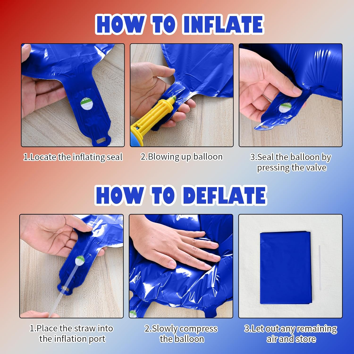 - Reusable Foil Balloons: The red and blue star balloon set is completely reusable. Avoid excessive friction and sharp objects when using it. Use a straw to deflate and flatten it after event, and it will still be a shining decoration at the party next time