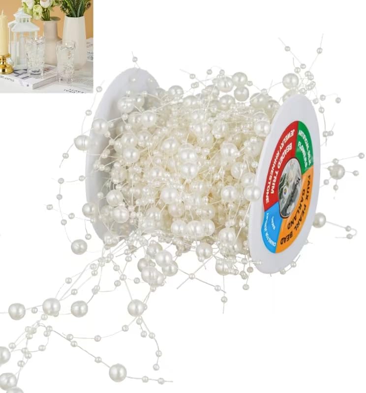 - Length: 13 feet (4 meters) floating candle centerpieces of continuous pearls on a spool for easy cutting and styling