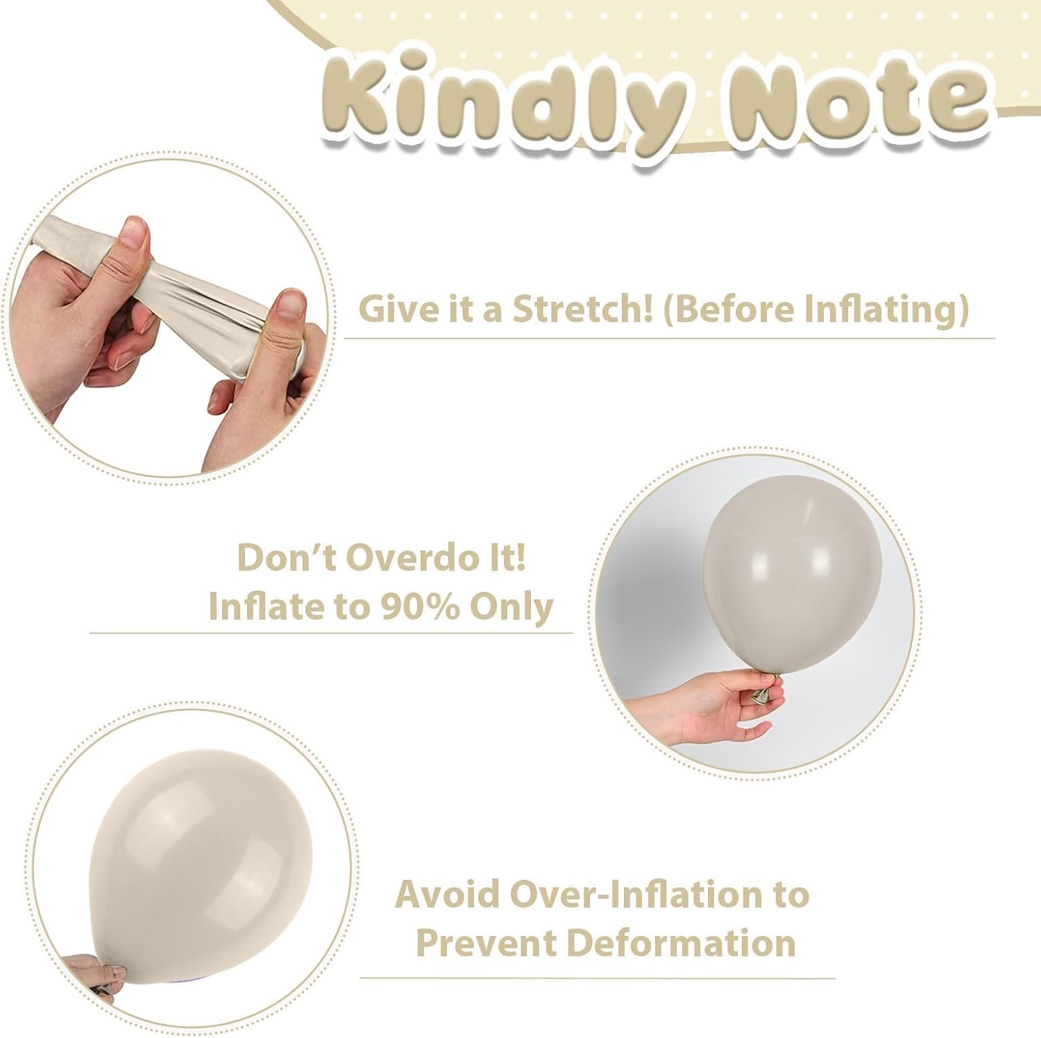 - Easy to Use: These white sand balloons set with cream heart balloons are ideal for themed party decorations. Simply inflate them with helium to make them float, or use air to easily attach them to walls, pillars, and more. Whether you use a hand pump, electric pump, or even inflate them by mouth, these latex balloons are quick and effortless to set up, making them an ideal choice for birthday parties and other celebrations.