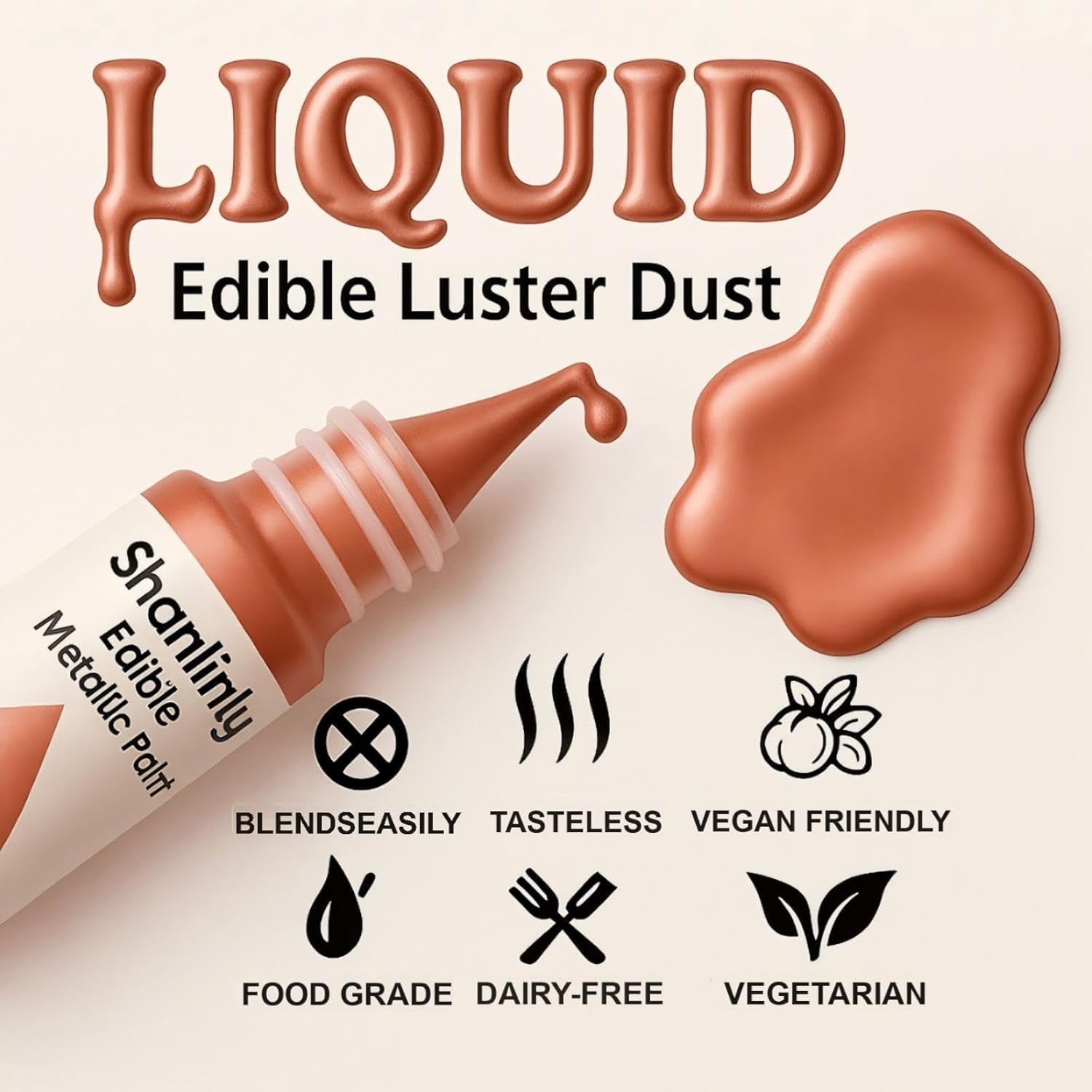 - 🎨 Vibrant, Food-Safe Shine– Made with MSDS-compliant ingredients, our non-toxic metallic luster dust edible rose gold paint adds luxurious gold, silver, and colored finishes to cakes, cookies, chocolates, and more—100% edible and safe!