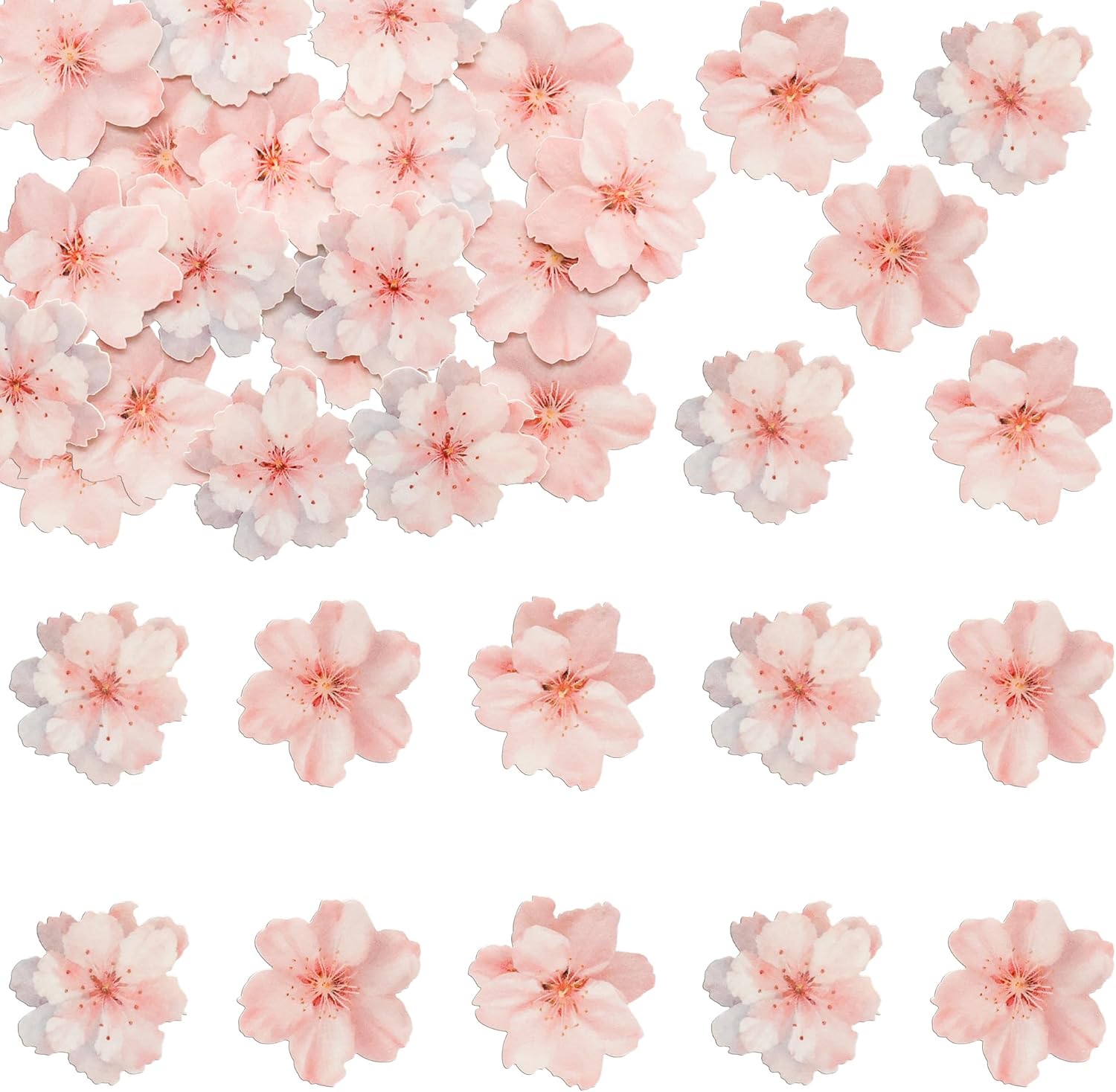 Ephlyn 54Pcs Edible Cherry blossom Cupcake Toppers Spring Bridal Engagement Baby Shower Birthday Party Cupcake Picks Anniversary Party Decorations Supplies Pink
