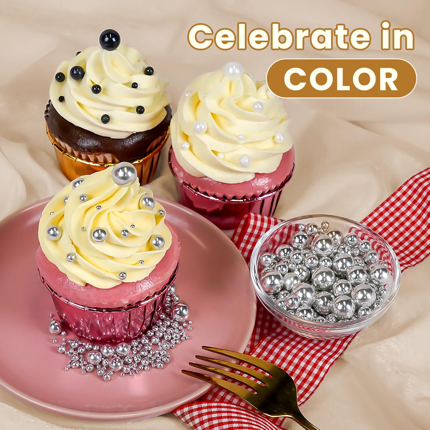 - Applicable Occasions:Silver cake decorations are great for weddings, graduation ceremony, birthdays, parties,holidays,and more to add party fun.Or simply indulging in everyday treats, our silver pearl sprinkles are the perfect finishing touch to your culinary creations.