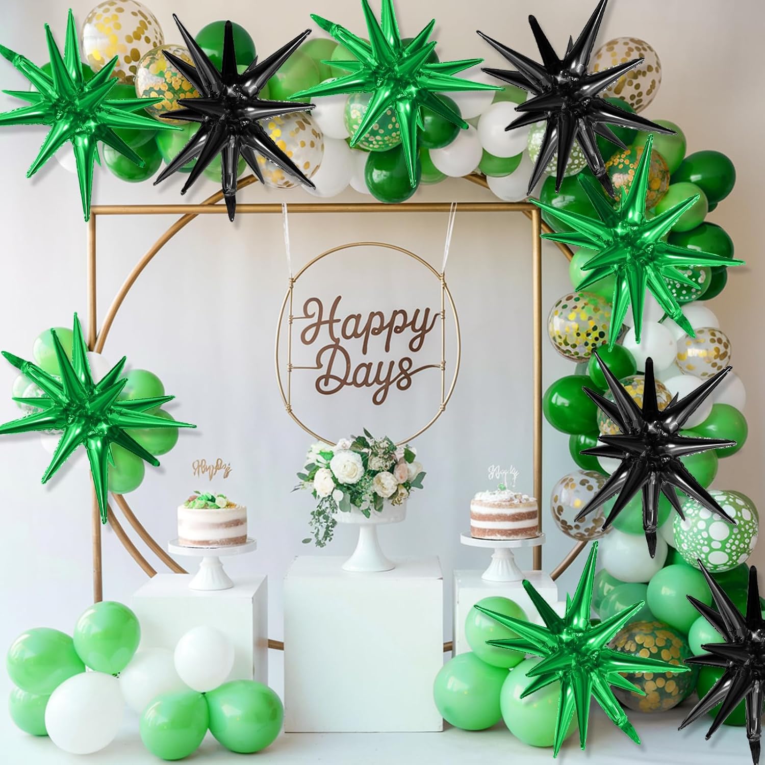 - Black Green Star Balloons Set:Package include 9pcs 22Inch explosion star balloons(black x 4,green x 5).Large enough to help you better decorate your party.