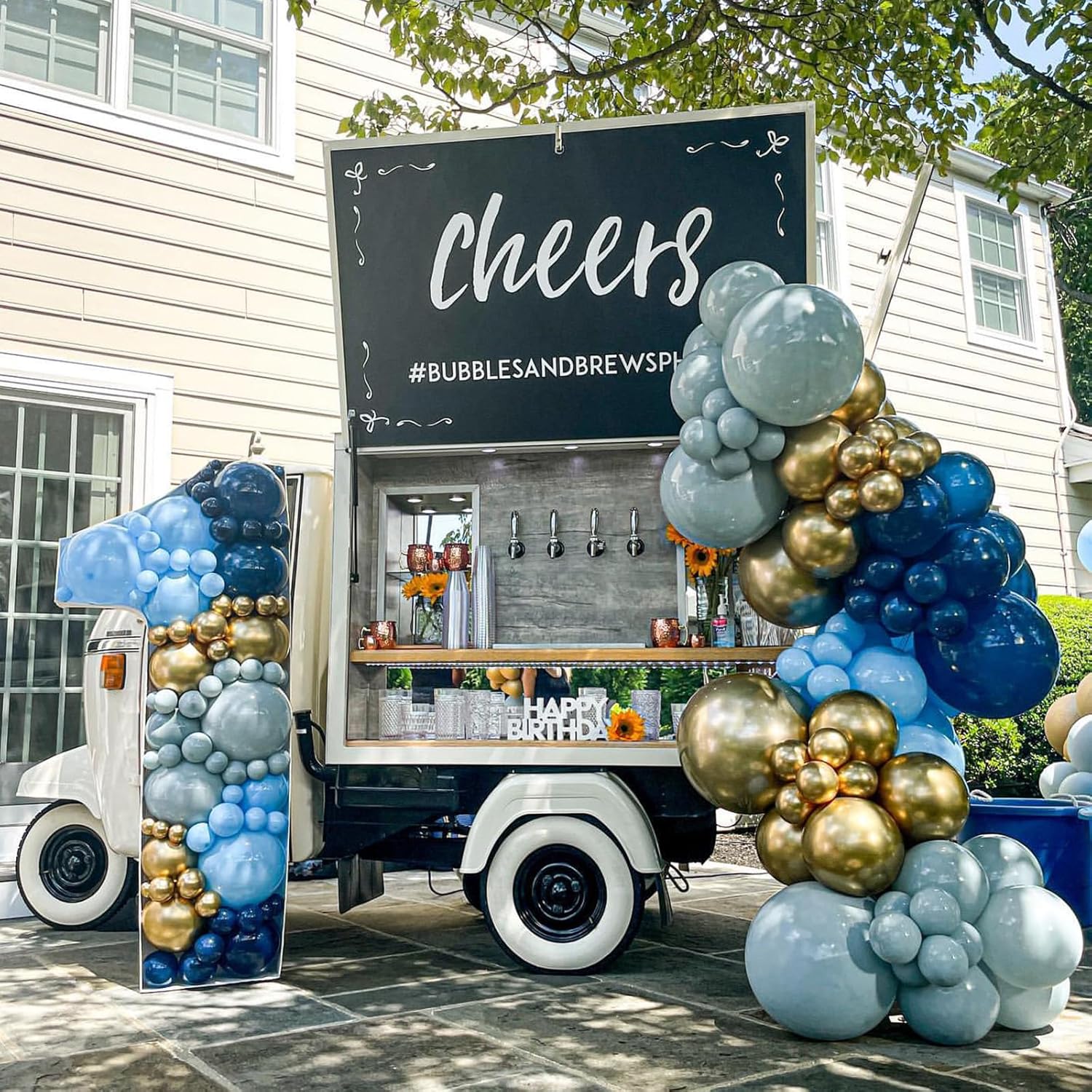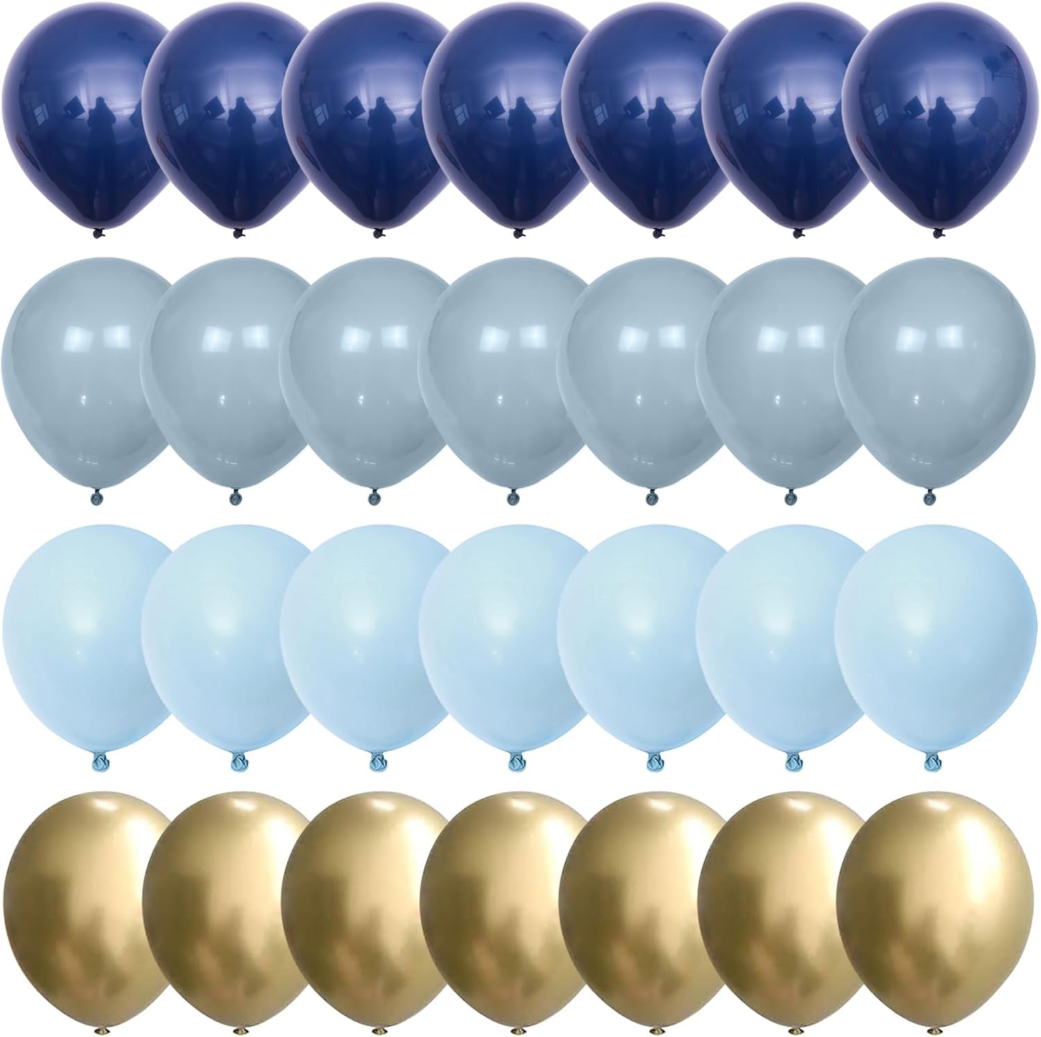 - Blue Gold Balloon Set: 35 pcs 12 in retro blue theme balloons, including 10 pcs retro navy blue balloon, 10 pcs muted dusty blue balloons, 10 pcs pastel blue balloons, 5 pcs metallic gold helium balloon, and 1 pc balloon ribbon