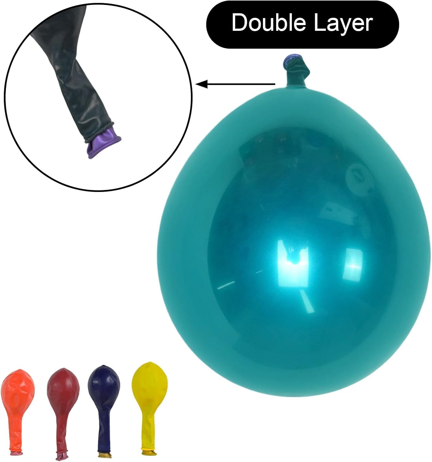 Double-stuffed Metallic Colorful Balloons, 50 Pcs 10 Inch Multicolor Balloons with Double Layer Design for Birthday Party, Wedding, Anniversary, and Celebration Decorations, Includes 10m White Ribbon