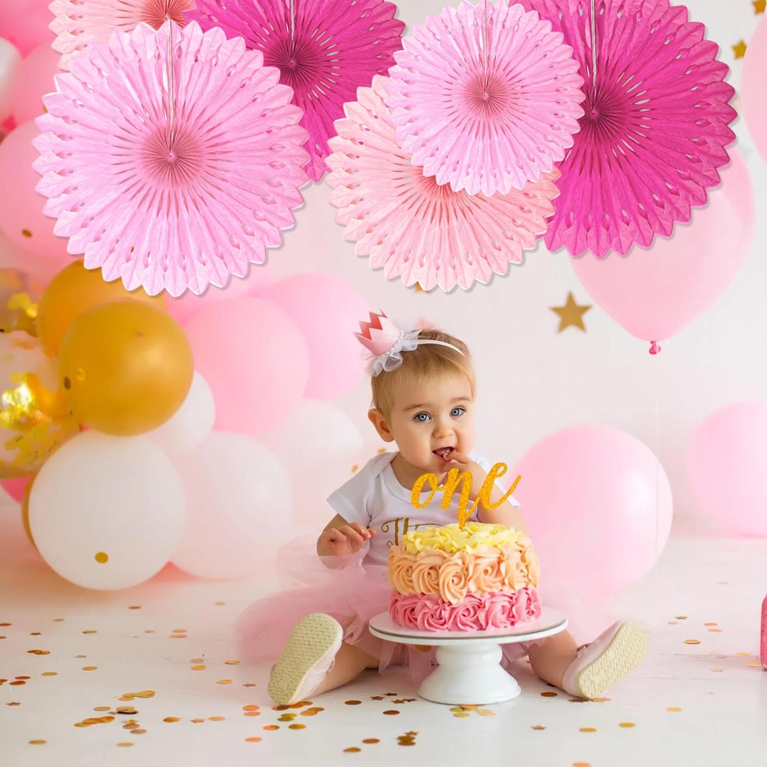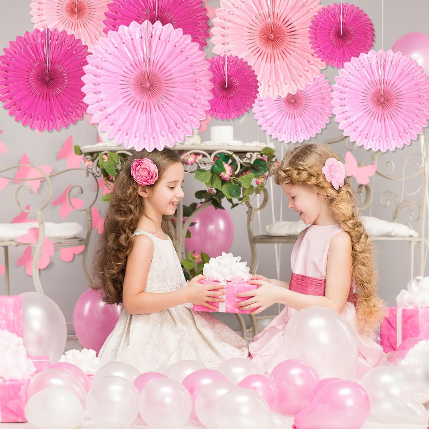 18 Pcs Pink Kit Hanging Honeycomb Paper Fans, Round Paper Fan Decorations for Weddings, Birthdays, Bachelorette, Photo Booth Backdrops, Baby Shower, Anniversary Events Party Supplies
