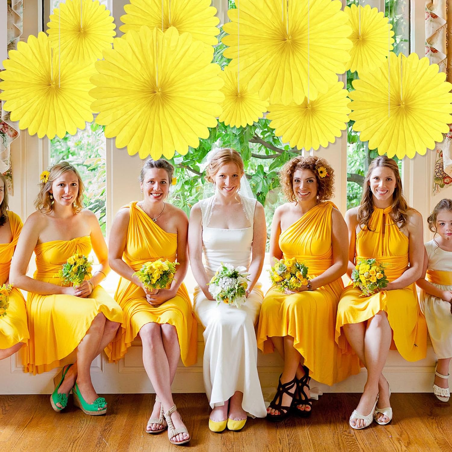 20 Pcs Light Yellow Hanging Paper Fan, Round Paper Fans Decorations Set for Weddings, Birthdays, Engagement, Bridal Shower, Baby Shower Event, Graduation, Party Supplies Decor
