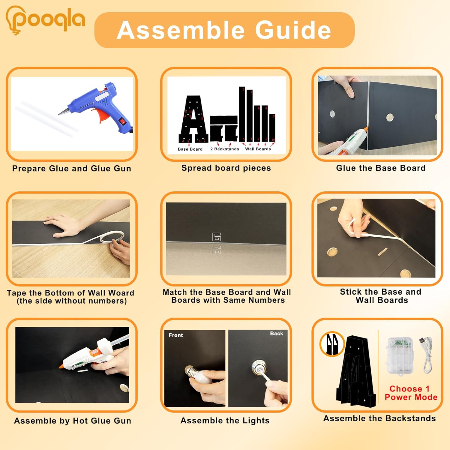 - Easy to Assemble: 1) Glue the base board, match the base and wall boards according to marked number and arrow. 2) Glue the base and wall boards together. 3) Screw the bulbs, connect LED lights and power on. Note: Glue gun, glue not included