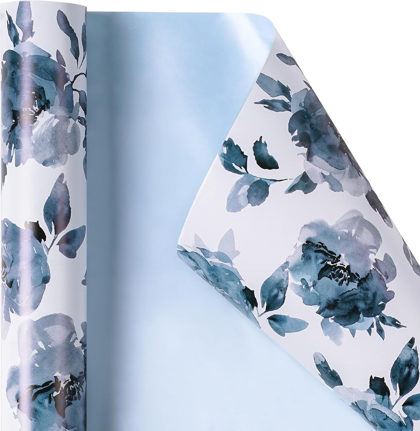 - Elegant Reversible Design: This double-sided wrapping paper features a watercolor blue floral pattern on one side and a solid light blue color on the other, offering a versatile and stylish look for different occasions