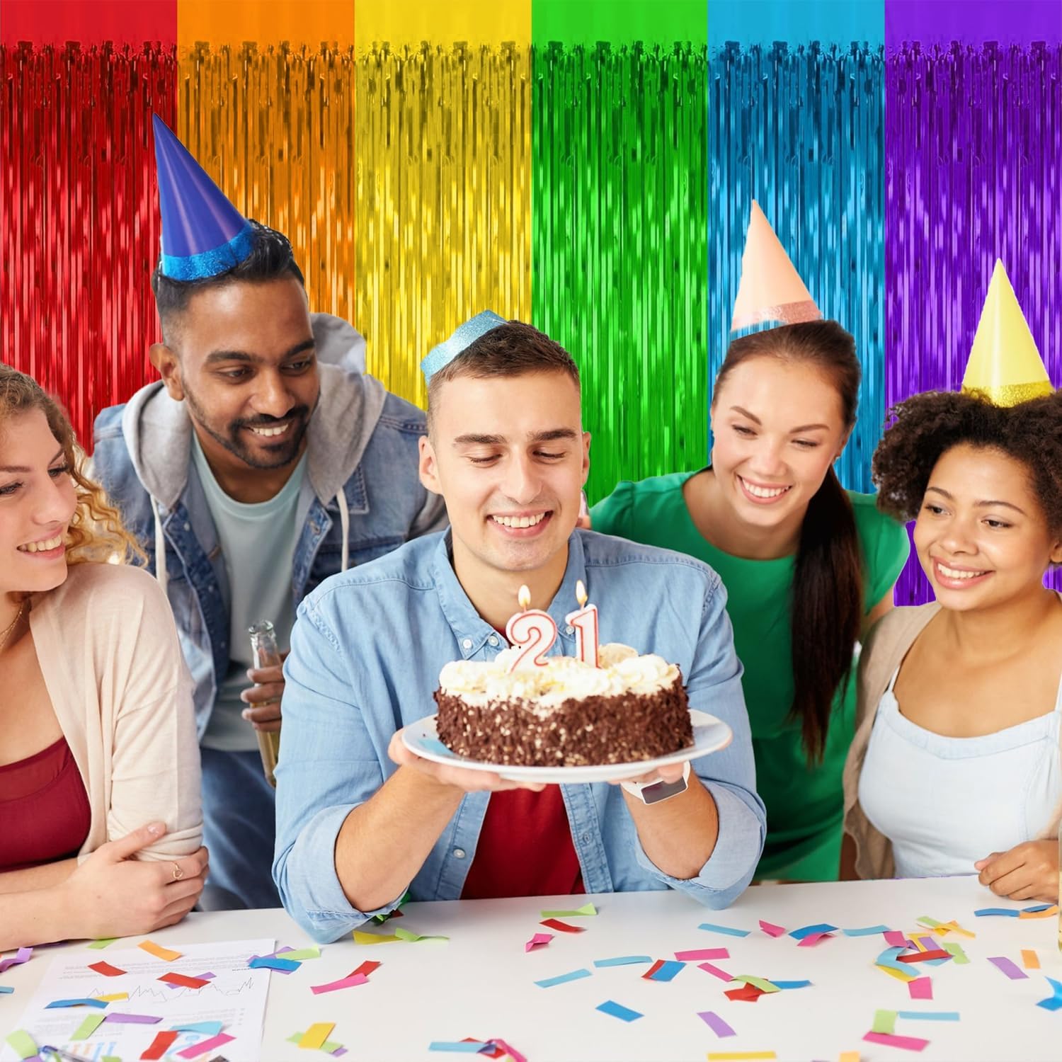 - Multiple Occasions: These rainbow foil fringe curtains backdrops are perfect for a live streamer backdrop,broadcast streamer backdrop,dessert table backdrop,stage backdrop,disco backdrop,bar backdrop,office backdrop decoration,home decoration,etc.