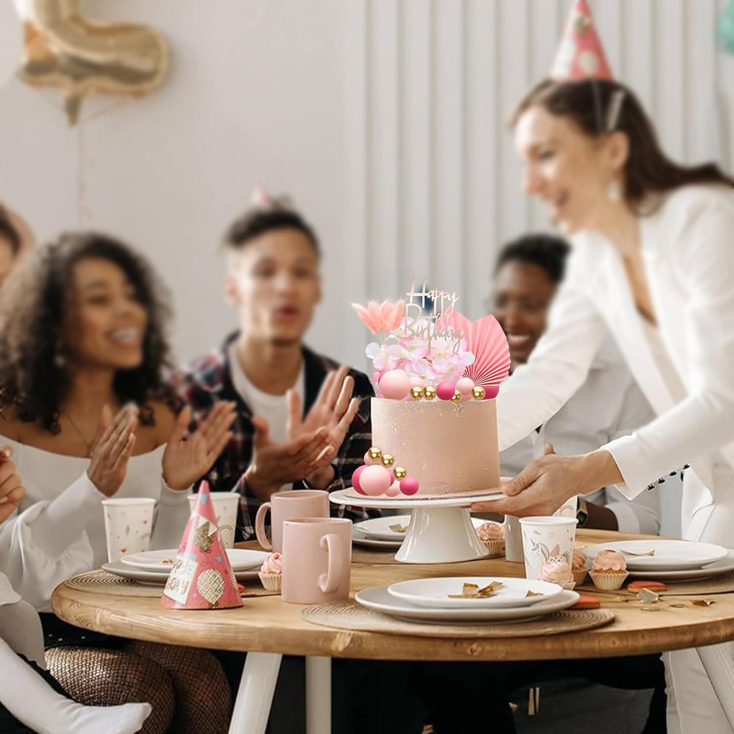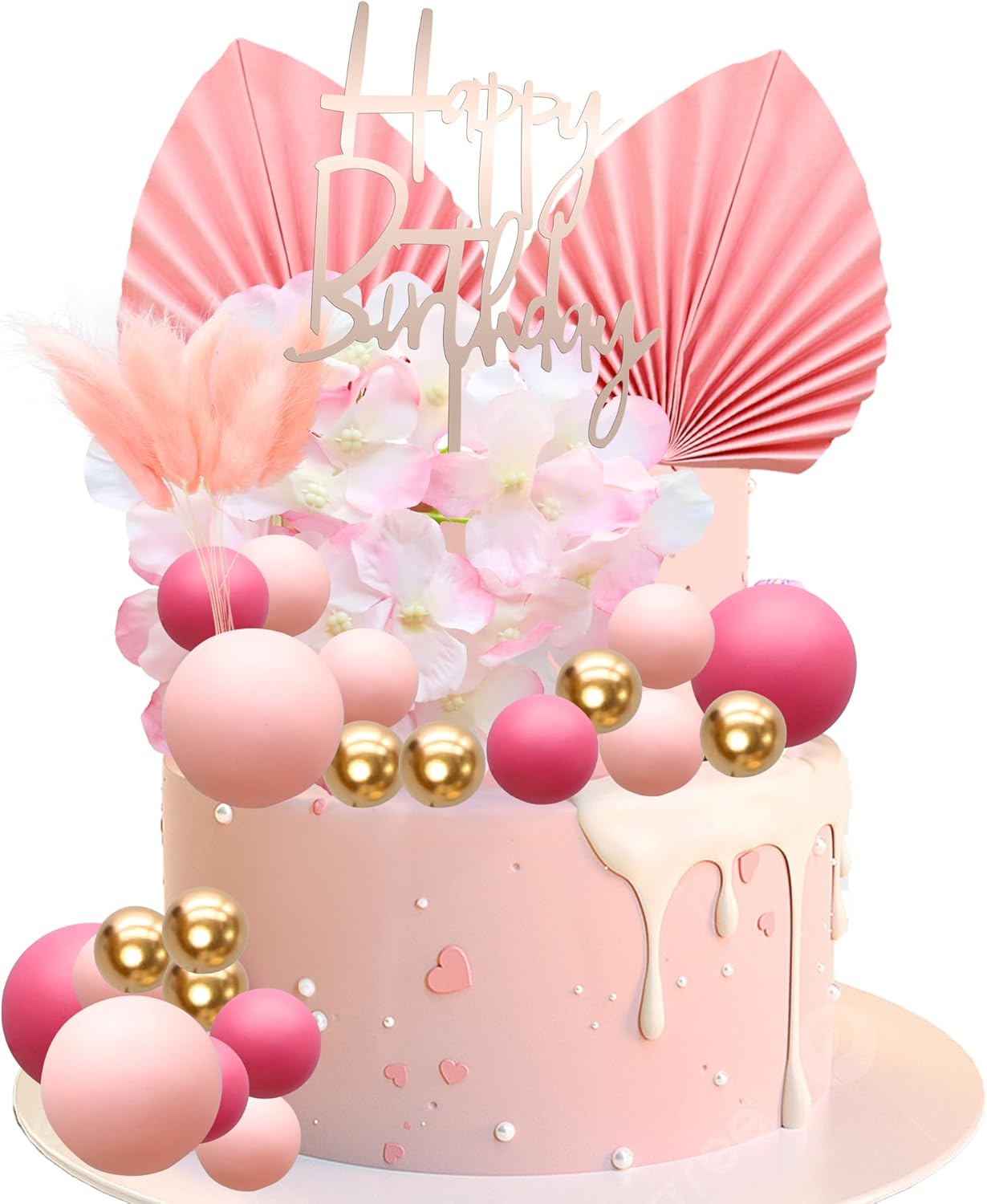 - -Package included: 2Pcs Fans + 2Pcs Artificial Flower + 1Pcs Happy Birthday Cake Topper + 5Pcs Leaves Cake Toppers + 19Pcs Balls. These Rose Red Artificial Flower Cake Toppers are so chic and funny that make your Bridal Shower theme party a big hit.