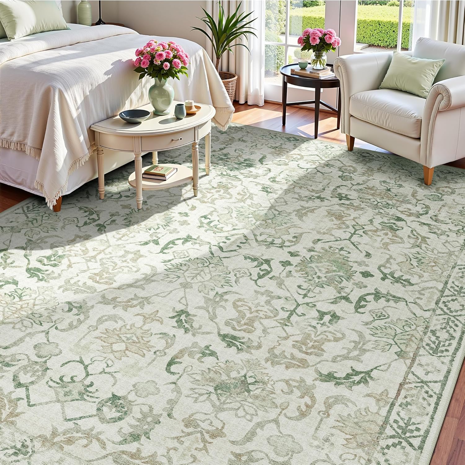 Green Area Rugs 8x10 Rugs for Living Room, Traditional Washable Rugs for Bedroom Distressed Large Area Rug Living Room Rug Non Slip Rug Carpet for Dining Nursery