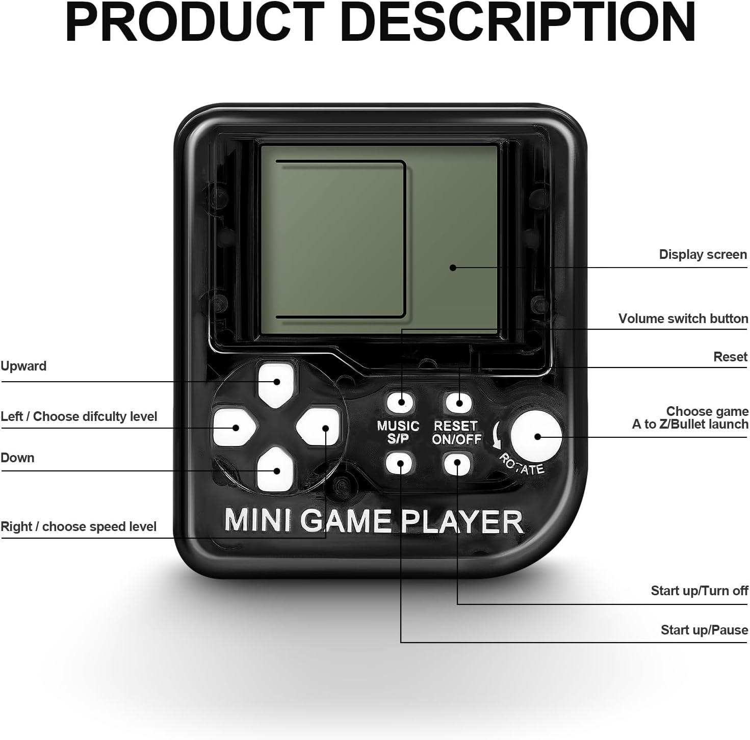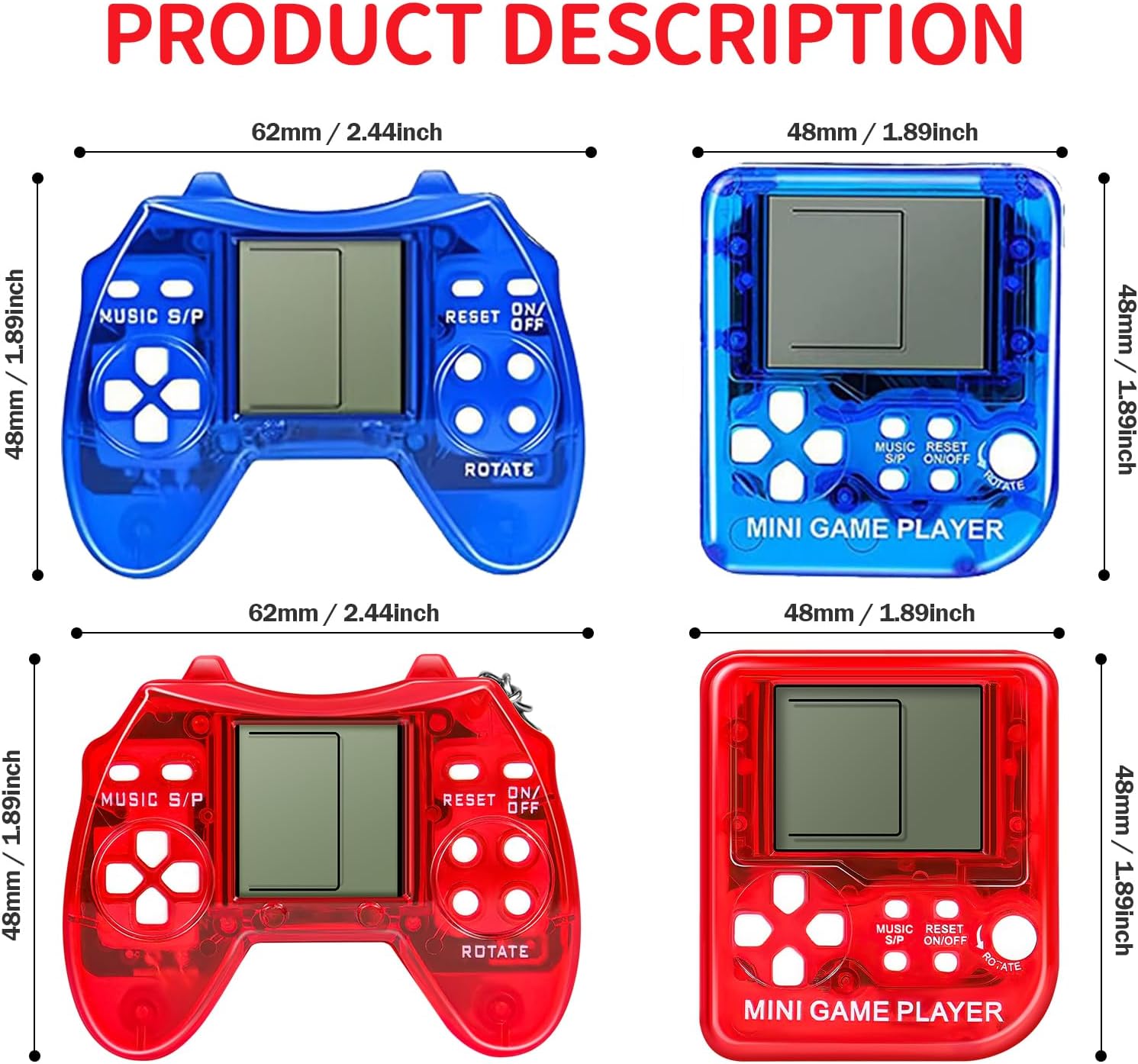 - 🎮 ARCADE VIDEO GAME KEYCHAIN ✨ You will receive 18pcs mini game console keychains, perfect for fans of video games and as party favors.This video game keychain has 26 classic games, each with 99 different difficulty levels. Spending some time with your child playing games together can also promote the relationship between the child and the parents.