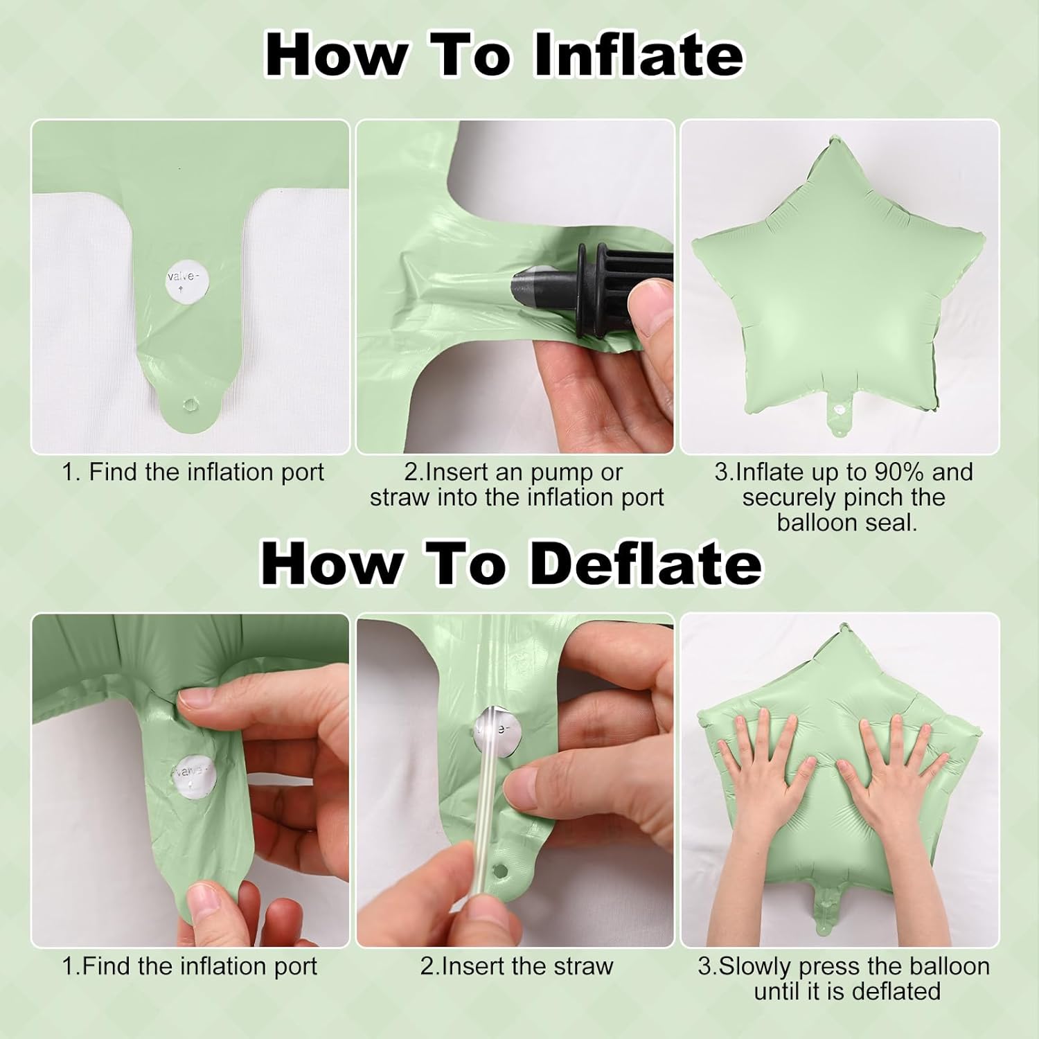 - 💝♻️【Rich & Reusable 18" Foil Balloons】: The rich foil balloons enhance the design sense of the decoration. They can be reused according to the instructions, bring a festive and fun atmosphere to any occasion, time and time again! 🎈🎉(Please place the hand pump under the transparent protective film at the balloon inflation port to inflate. After the activity, insert the attached straw under the protective film and gently press to deflate it for reuse.)