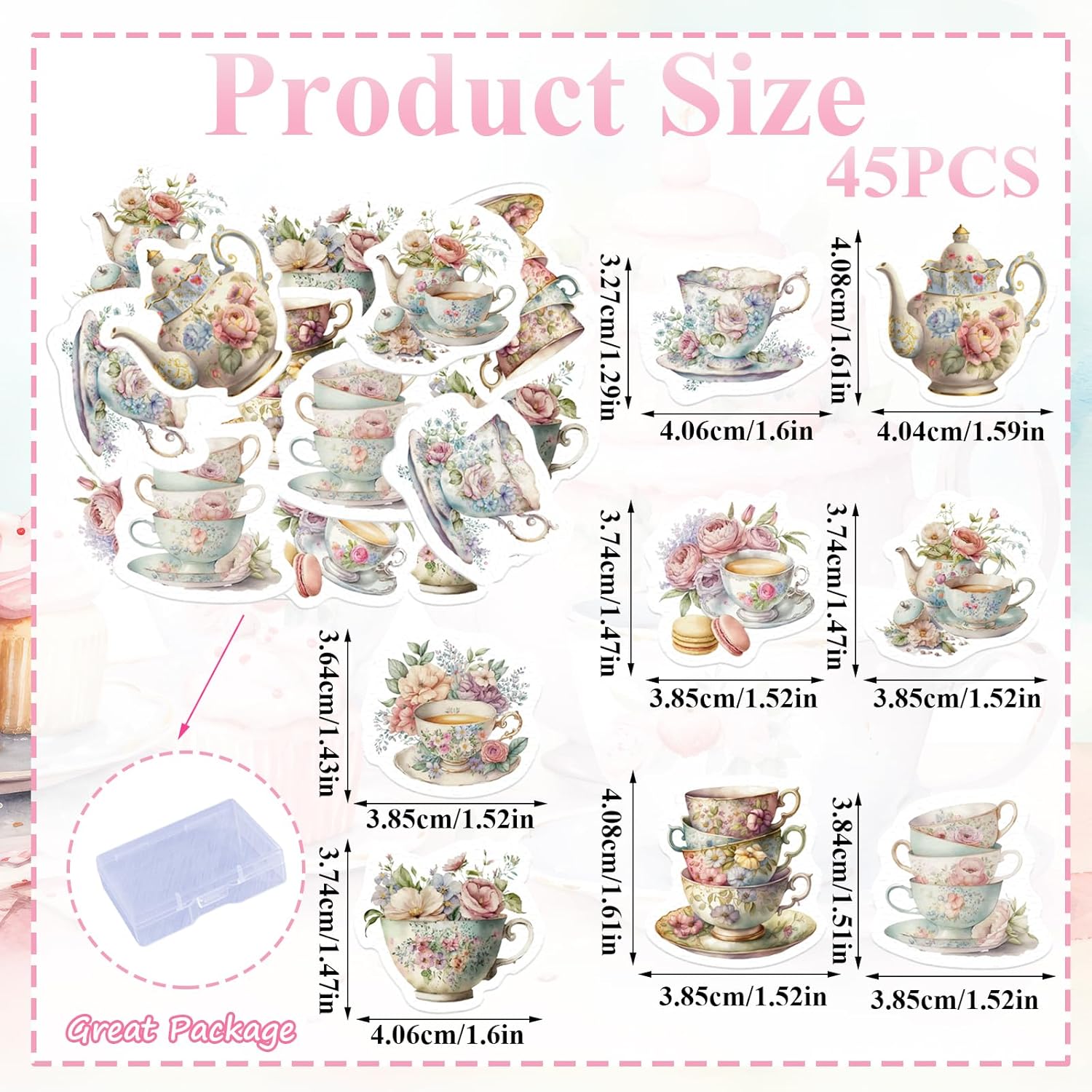 45PCS Edible Tea Party Cupcake Toppers Wafer Paper Teapot Teacup Cupcake Toppers Floral Tea Time Cake Picks Afternoon Tea Decorations for Tea Party Theme Baby Shower Decor Supplies