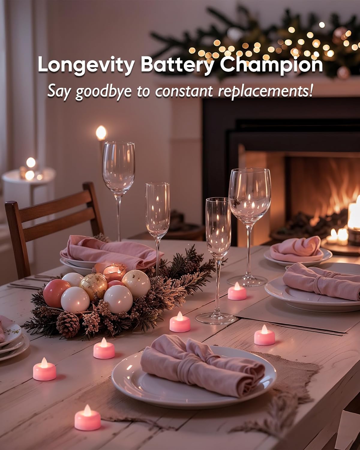 - Best Decoration: Emitting charming pink white light, these battery tea lights add a romantic touch to any setting. Ideal for pink party decor, weddings, dates, Valentine's Day, proposals, table centerpieces, and special nights