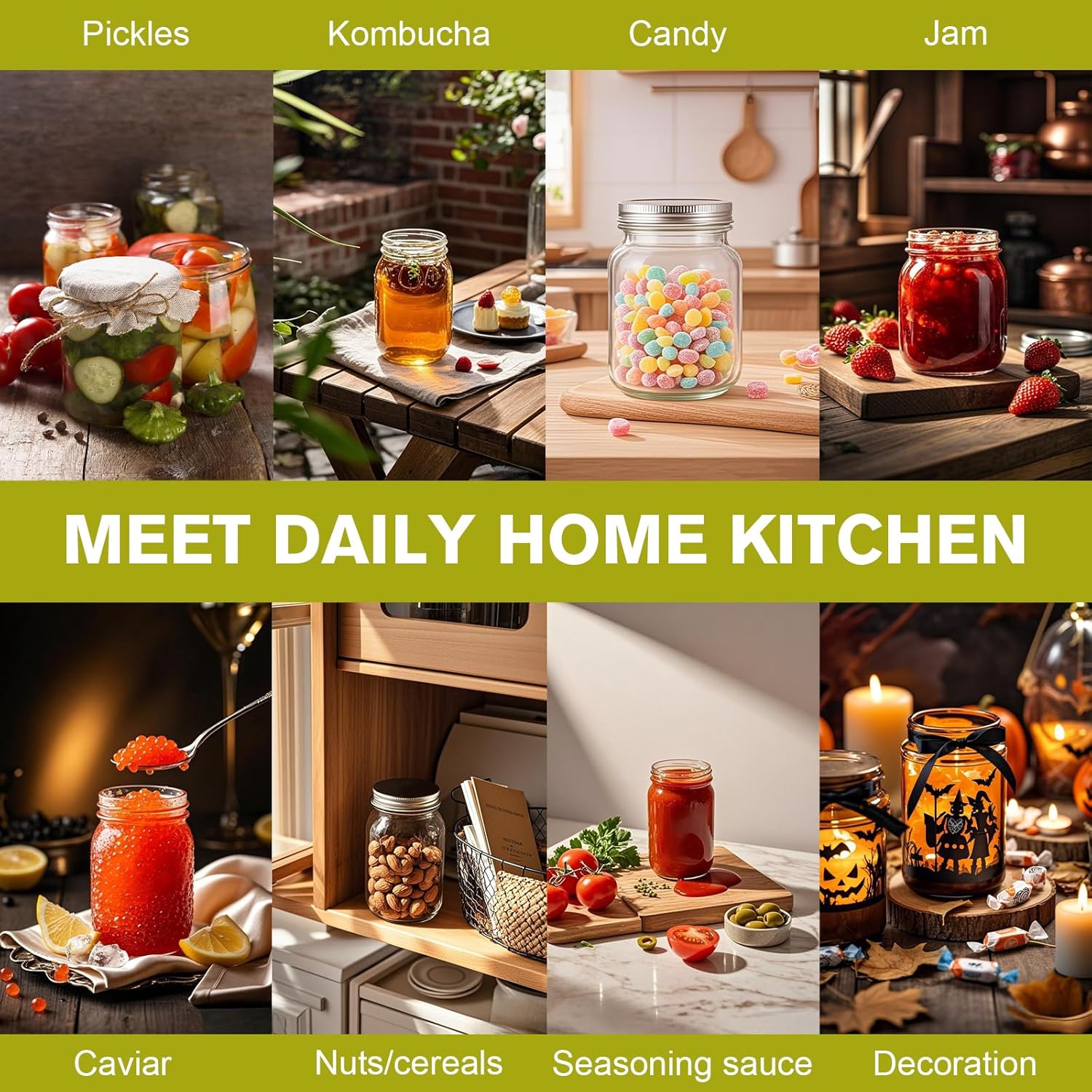 - Sealed and Leak-proof: Each jar comes with a time-tested sealing ceiling compound that ensures the sealing quality of each lid, making it perfect for preserving and canning. Safe for the refrigerator and freezer. Wide mouth is easy to grip and clean, suitable for storing food, convenient for our daily life.