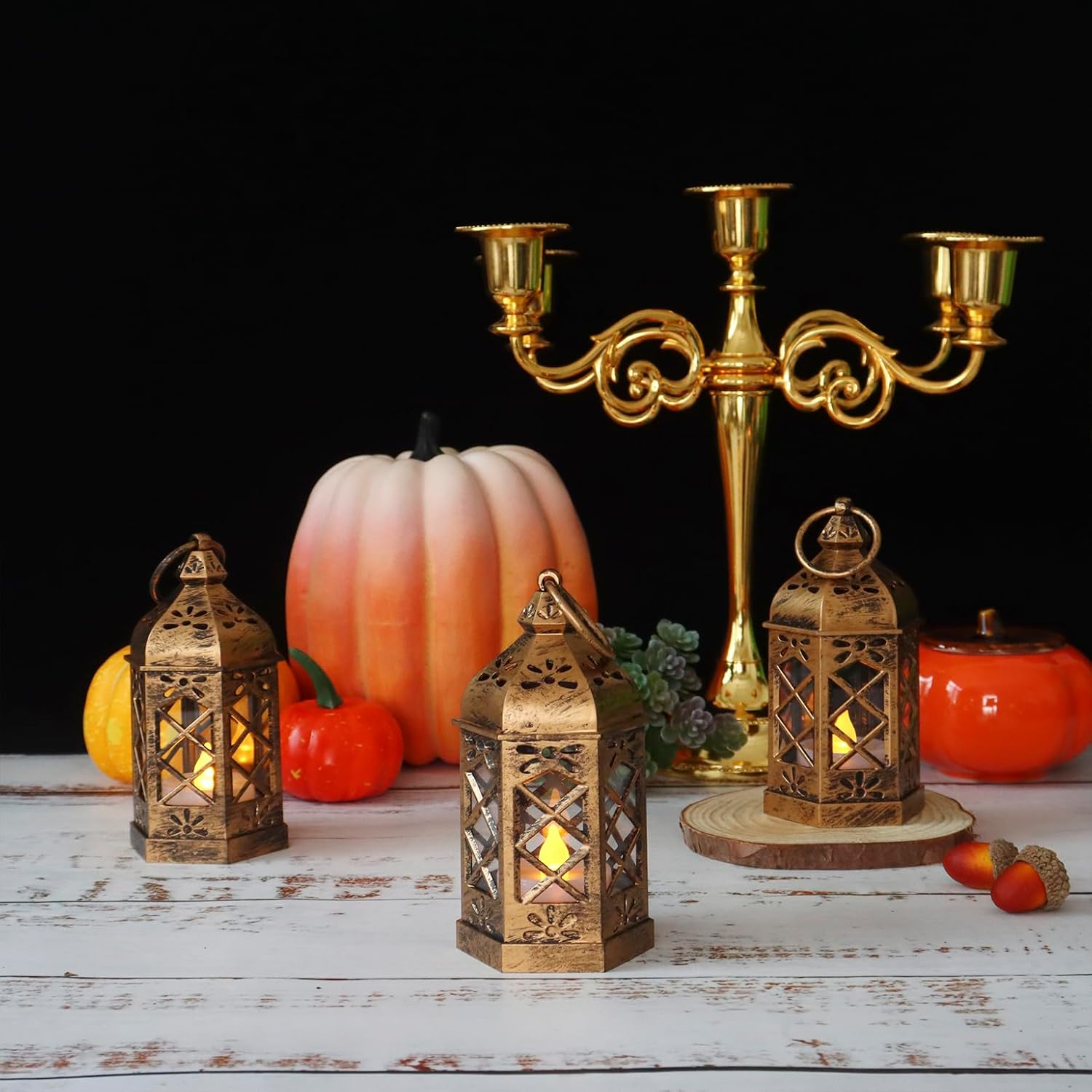 LLQ 12Pcs Mini Lantern for Centerpieces, Small Candle Lanterns Decorative Indoor, Vintage Hanging Moroccan Lantern for Halloween Decorations, Christmas Centerpieces for Tables, Wedding Table Decor