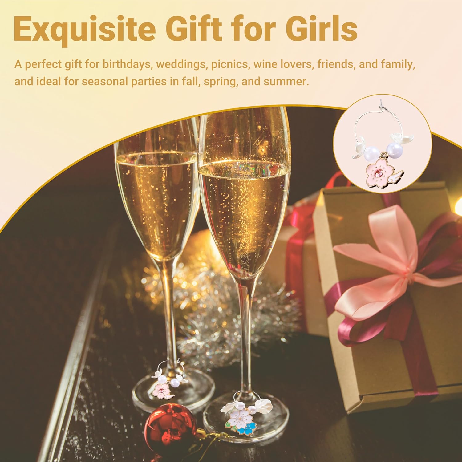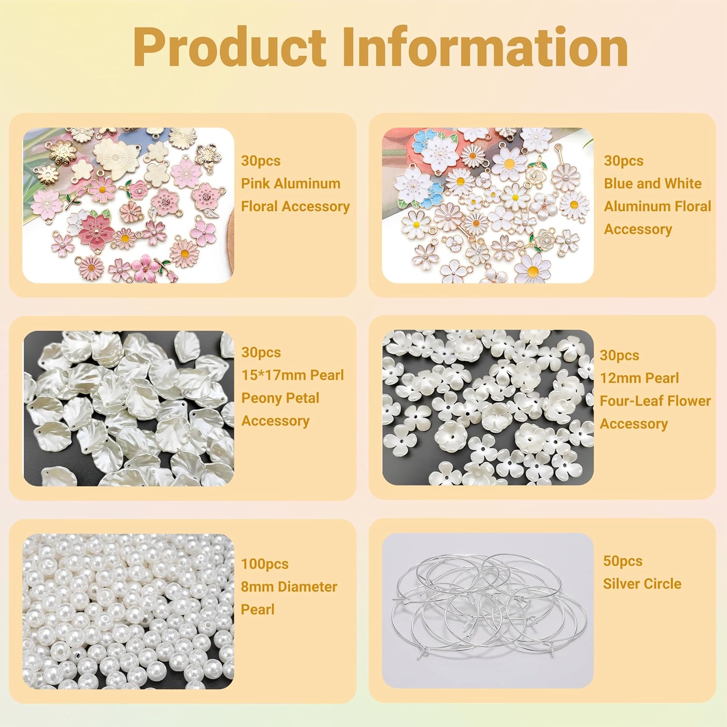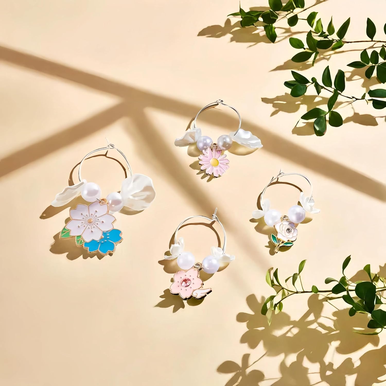 - Floral Wine Charms DIY Kit: Includes 60 zinc alloy flower pendants, 60 pearl petals, 100 pearl beads (approx. 0.3-inch), and 50 silver-tone hoops to craft custom names or decorative phrases for personalized drinkware accessories