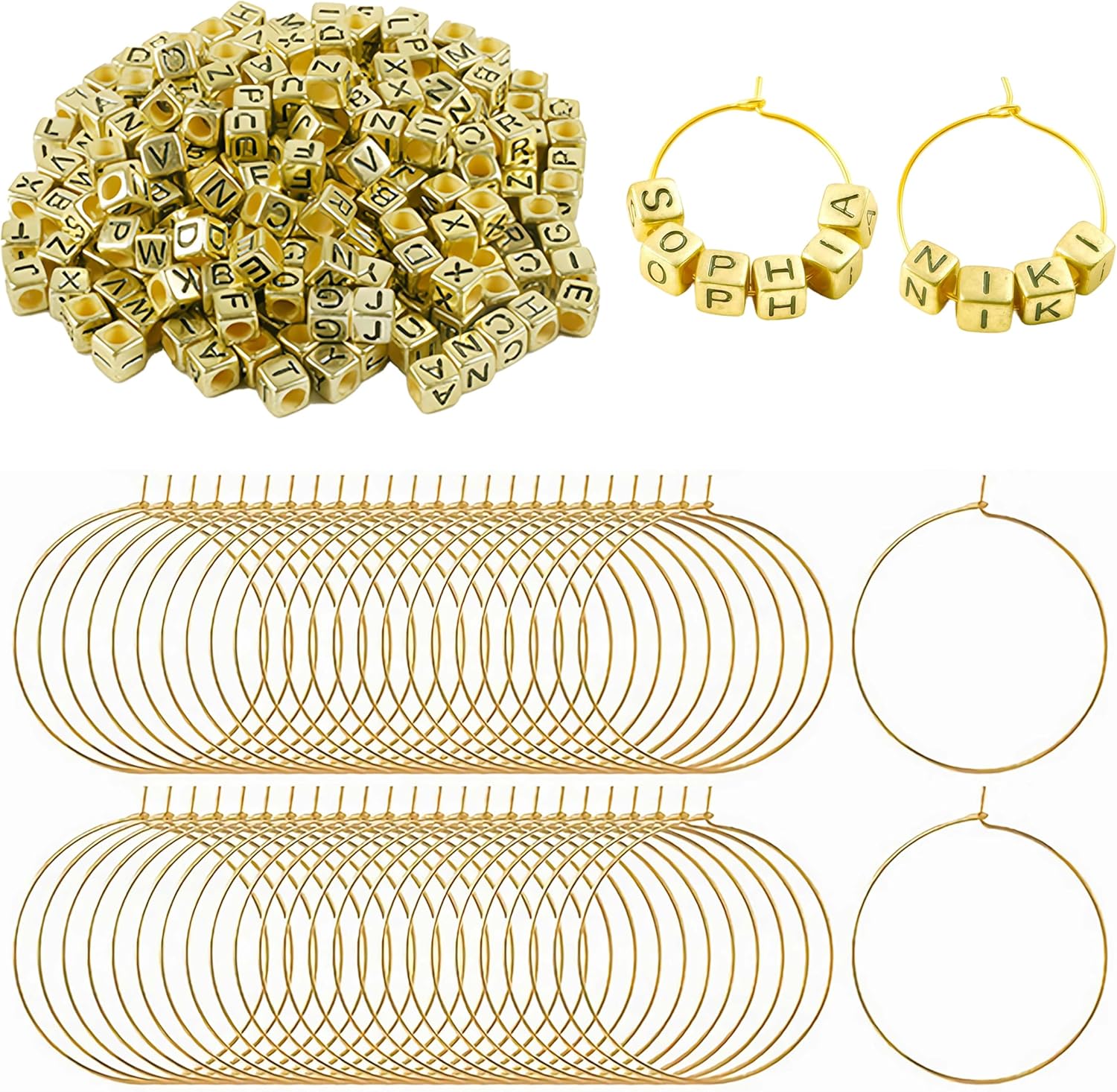 - Easy Assembly : Simply bend hoops with pliers (not included), thread beads, and secure prongs. Each 1-inch hoop holds up to 10 letter beads. Note: Package excludes tools