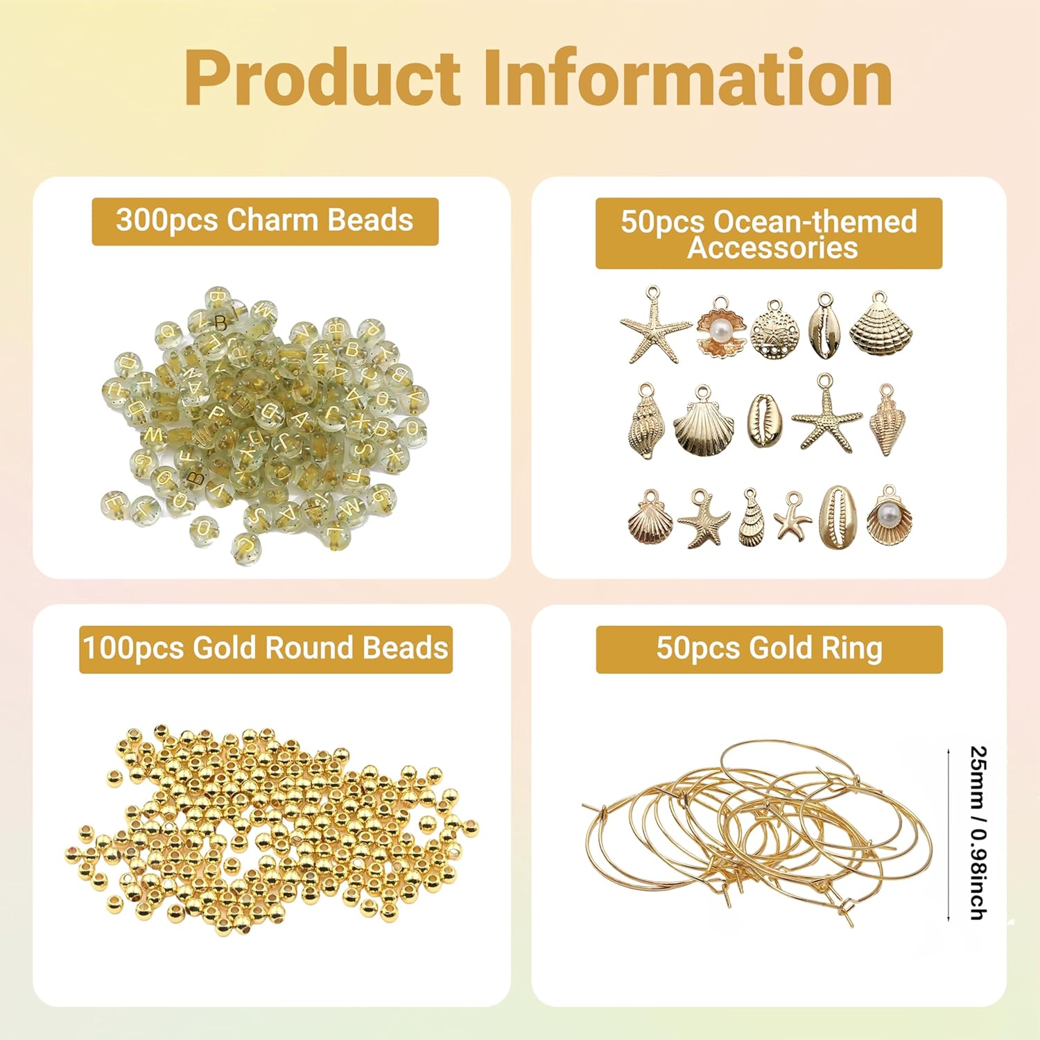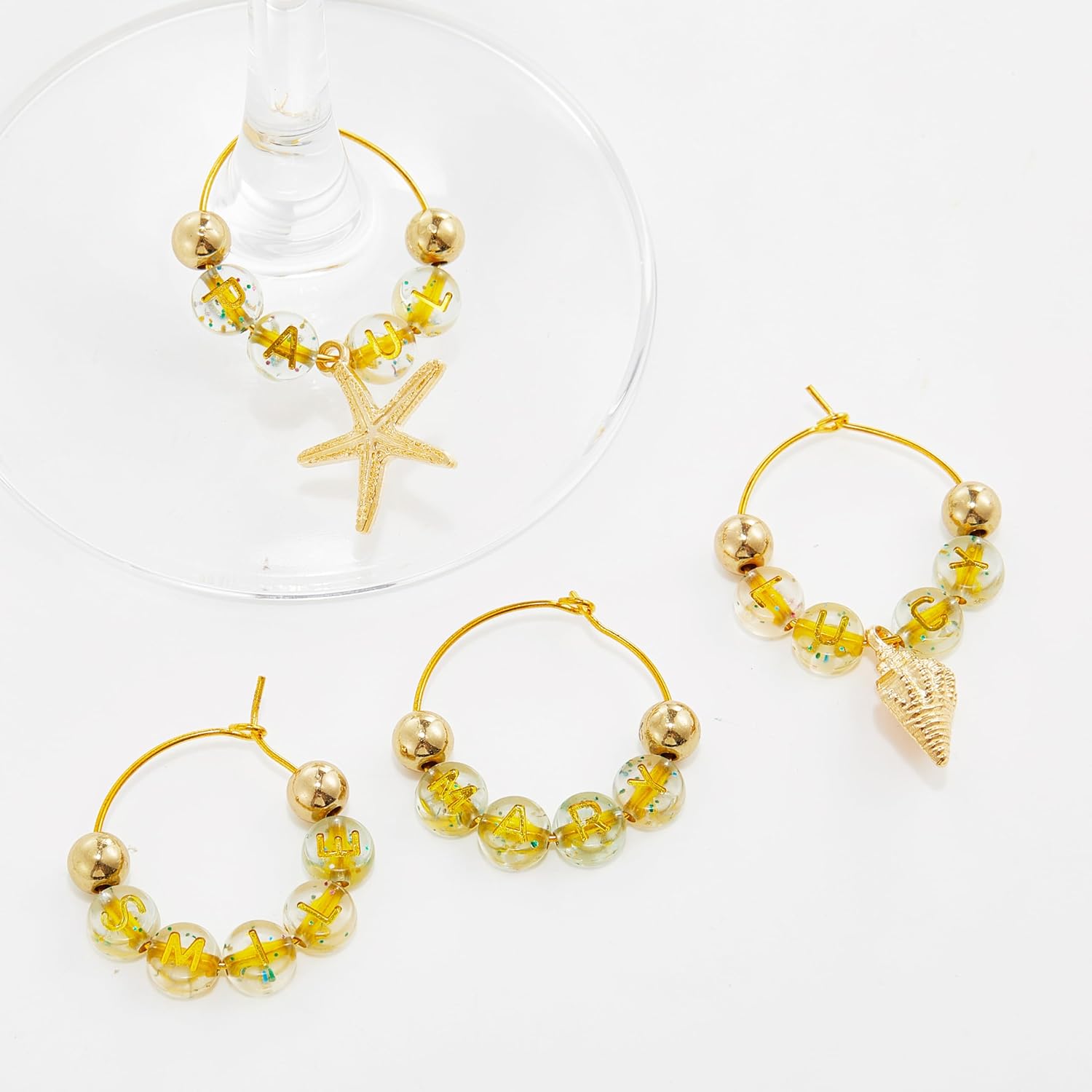 - DIY Wine Charms Kit: Includes 300 transparent gold-toned letter beads for customizing names or phrases, paired with 50 seashell charms and 100 gold-toned spacer beads, allowing you to create personalized wine glass accessories designed for long-lasting use