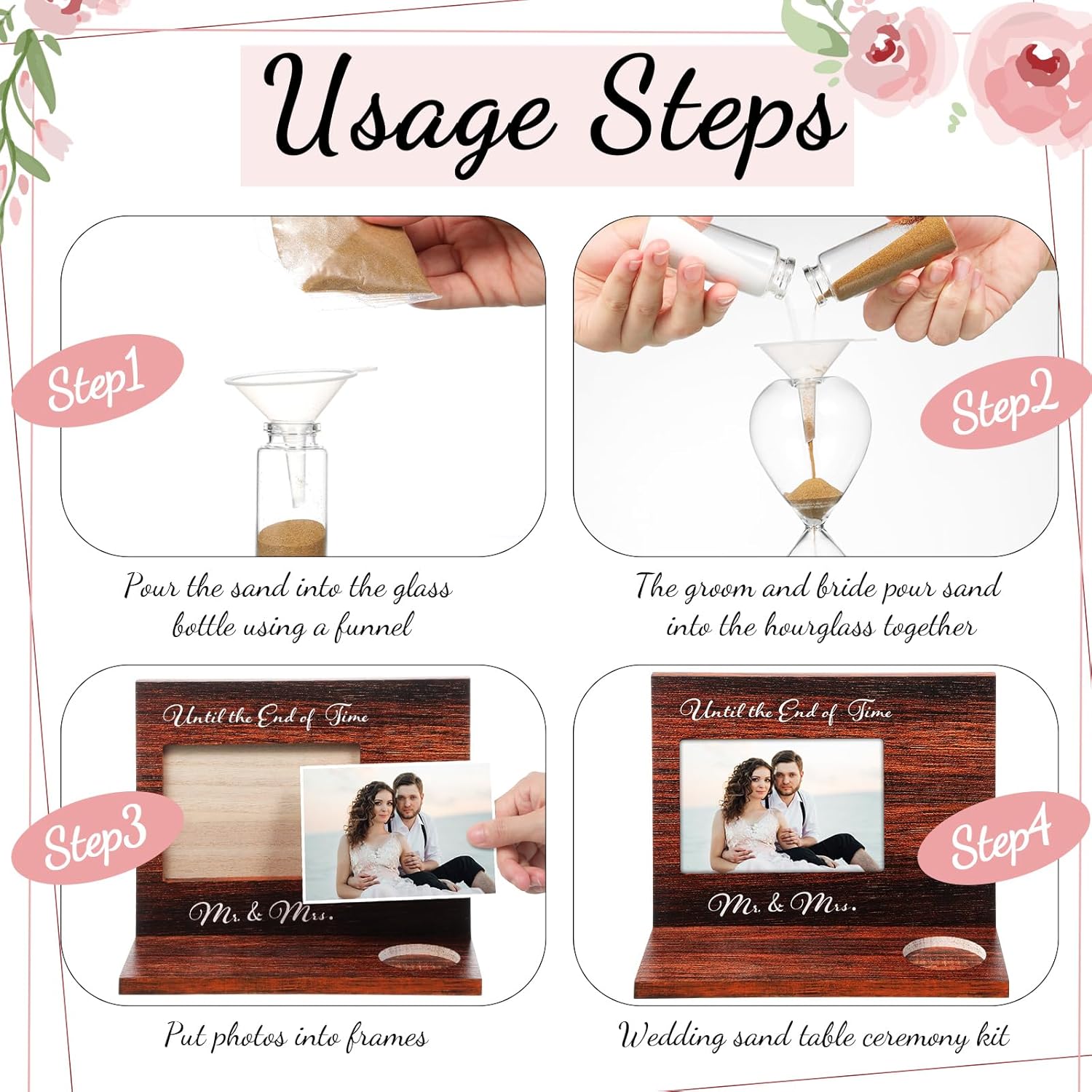 - Meaningful and Monumental Design: We creatively combine the wedding sand ceremony photo frame and the hourglass. The photo frame places photos of you and your lover, and the hourglass on the photo frame base is applied for countdown during the wedding sand table ceremony. This wedding sand ceremony set will be a meaningful item to celebrate your wedding