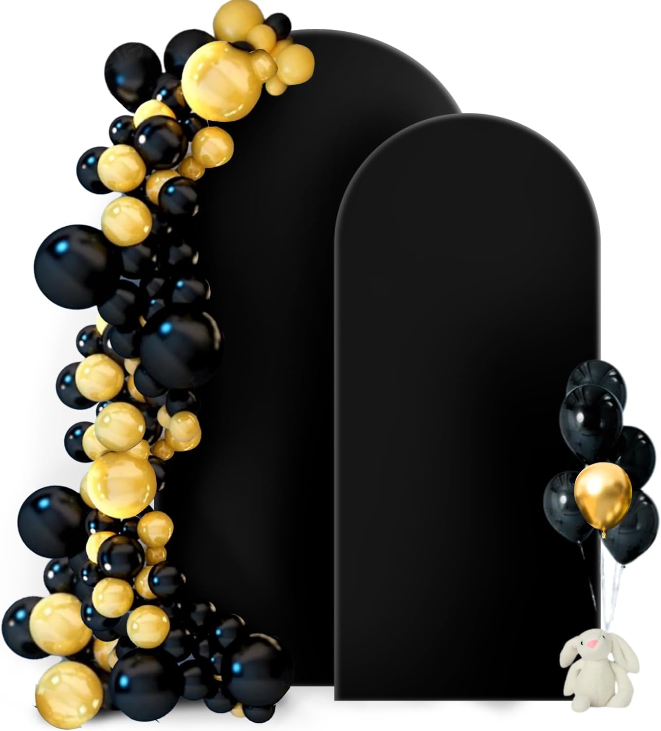 - Thick Spandex Arch Backdrop: This 7.2ft and 6 ft black arch backdrop cover set is made of stretchy spandex fabric that provides a smooth, wrinkle-free appearance, and 2-sided coverage allowing for complete arch decoration from all viewing angles