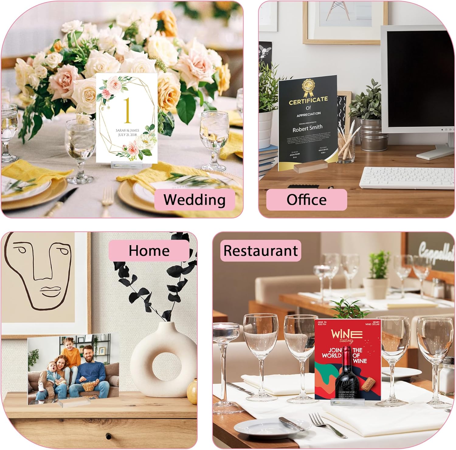 - Versatile Place Card Holders for Table: The place card holder doubles as a multi-functional display for table number stands, name card holder, small sign holder or picture holders for tables. Perfect for weddings, parties, restaurants, offices, and homes