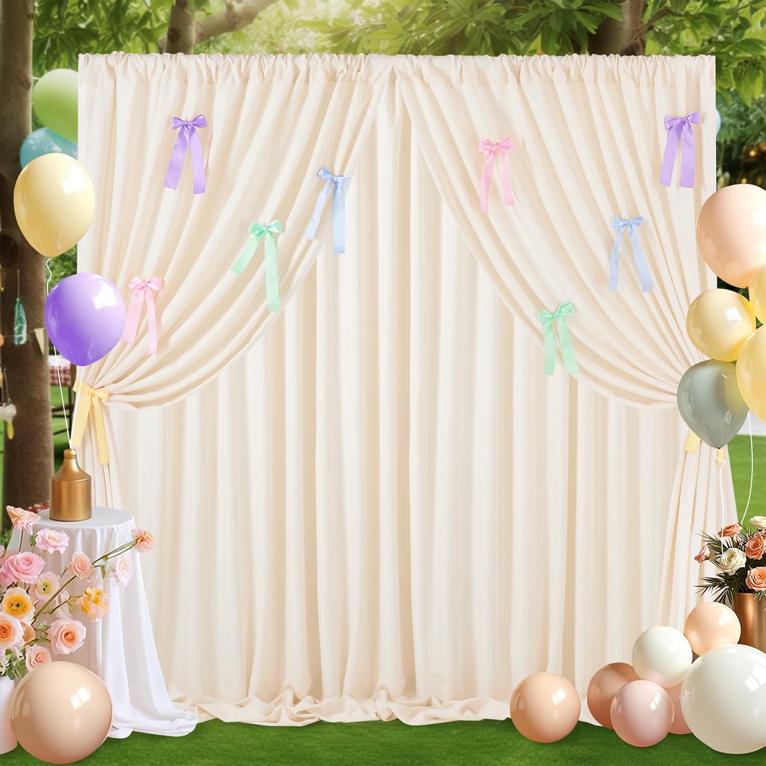 - 【Occasions】: The backdrop curtain is perfect for weddings, birthdays, parties, photography sessions, receptions, catering displays, bridal and baby showers, home decor, celebrations, graduations, ceremonies, anniversaries, and special events. Whether used alone or paired with other products, they will add unique charm to your event and make it stand out.