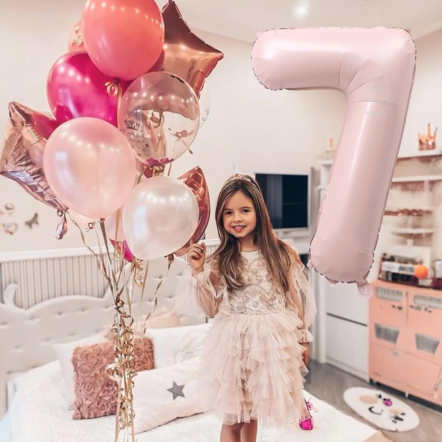 - Perfect Party Decorations: These light pink large shiny number 7 mylar foil balloons add a stylish touch to birthday, anniversary, graduation, pool party, wedding, baby shower, and holidays like New Year's, Halloween, and Christmas. Ideal as a backdrop or photo prop, they bring charm to events for men, women boys and girls