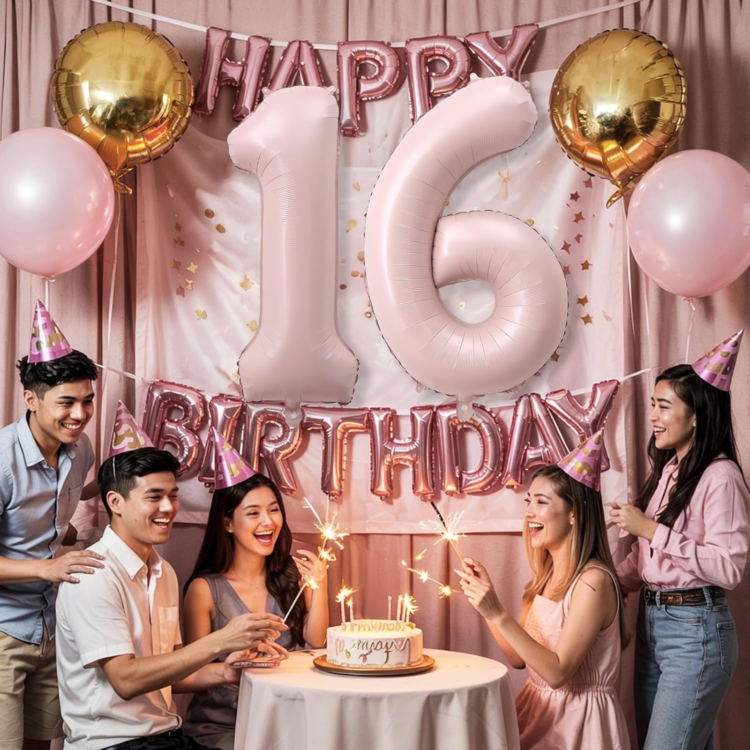 - Baby Pink Number 16 Balloon 40 Inch: Includes 1pc 16 balloon and a straw for easy inflation and deflation. This helium balloon is perfect for birthdays, anniversaries, or special occasions like a 16th celebration.