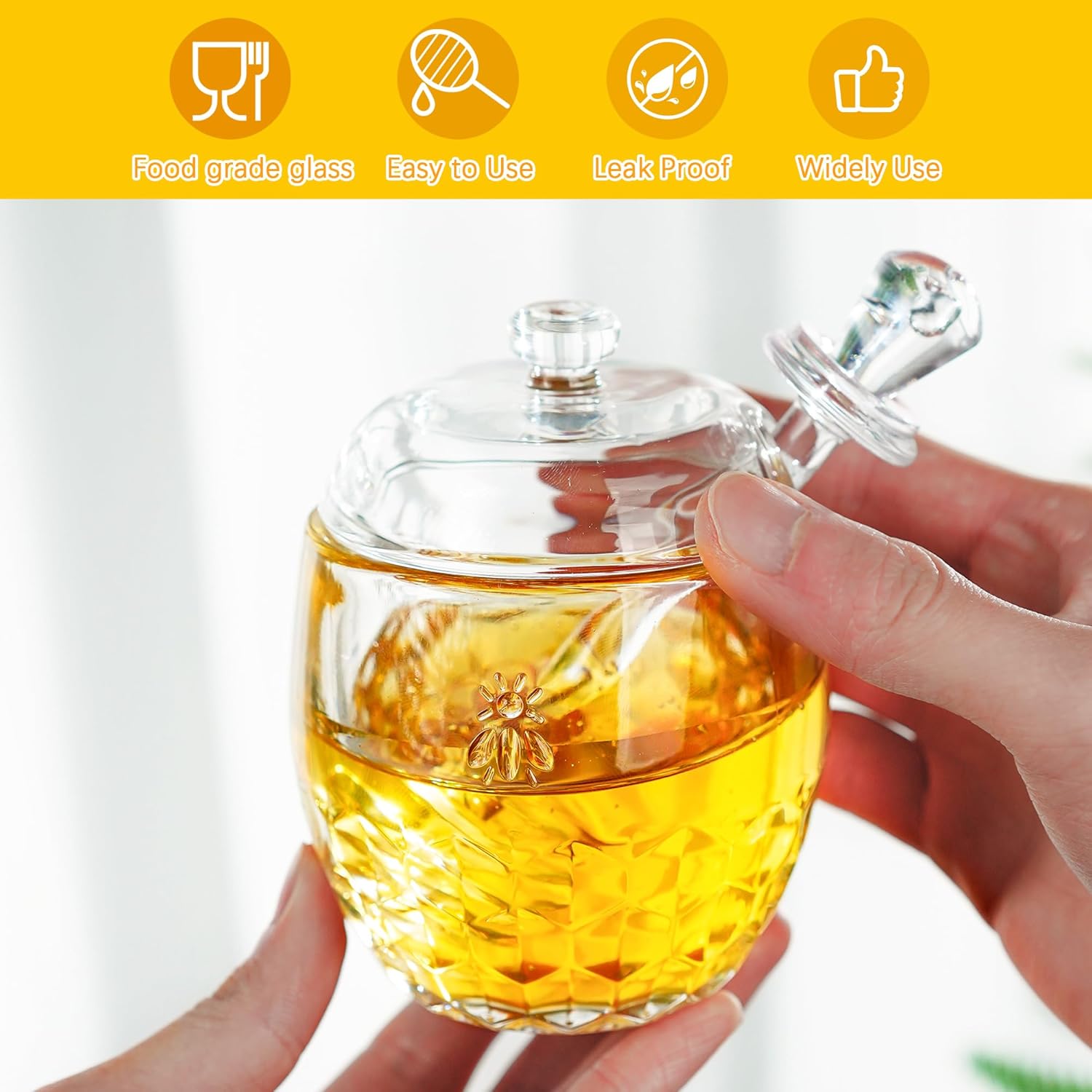 - Transparent Design: Crystal-clear glass allows you to easily monitor honey levels. With a generous 7.5-ounce capacity, this glass honey jar ensures you always have plenty of honey on hand for sweetening your favorite beverages and dishes