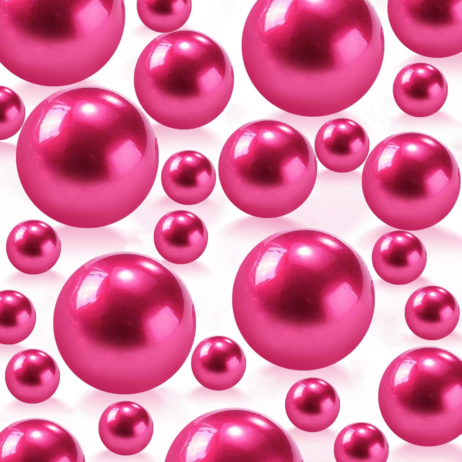180PCS Hot Pink Beads for Centerpieces Vases, No Hole Polished Pearl Makeup Beads Mixed 8/14/20mm Sizes, Pearl Vase Fillers Table Scatters for Party Wedding Decor