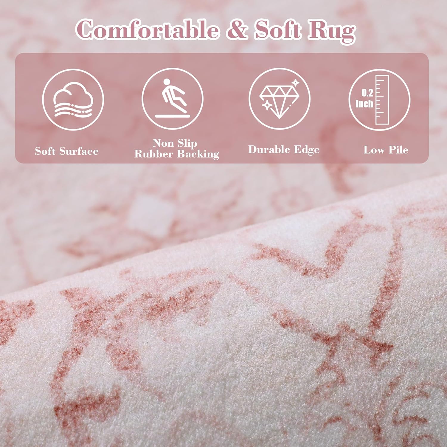 Pink Extra Large Area Rug 10x14 for Living Room, Distressed Washable Rug for Dining Room Bedroom, Anti-Slip Low-Pile and Soft Accent Rug Farmhouse Office Home Decor