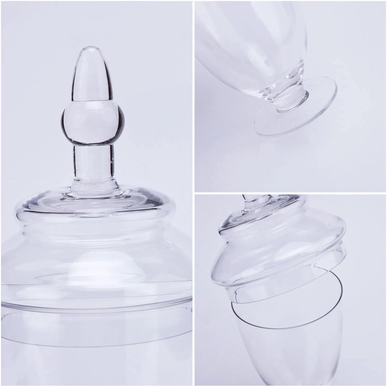 - DIFFERENT SIZES: This set of 3 apothecary jar glass includes 3 beautiful candy glass jars with lids in varying shapes and sizes. The size of the candy jars for candy buffet are approximately (with lids) 8.4" (H) x 4.5" (D), 8.4" (H) x 4.4" (D), 10.5" (H) x 4.4 "(D). Their capacities are 20 ounces, 23 ounces, and 28 ounces, respectively.