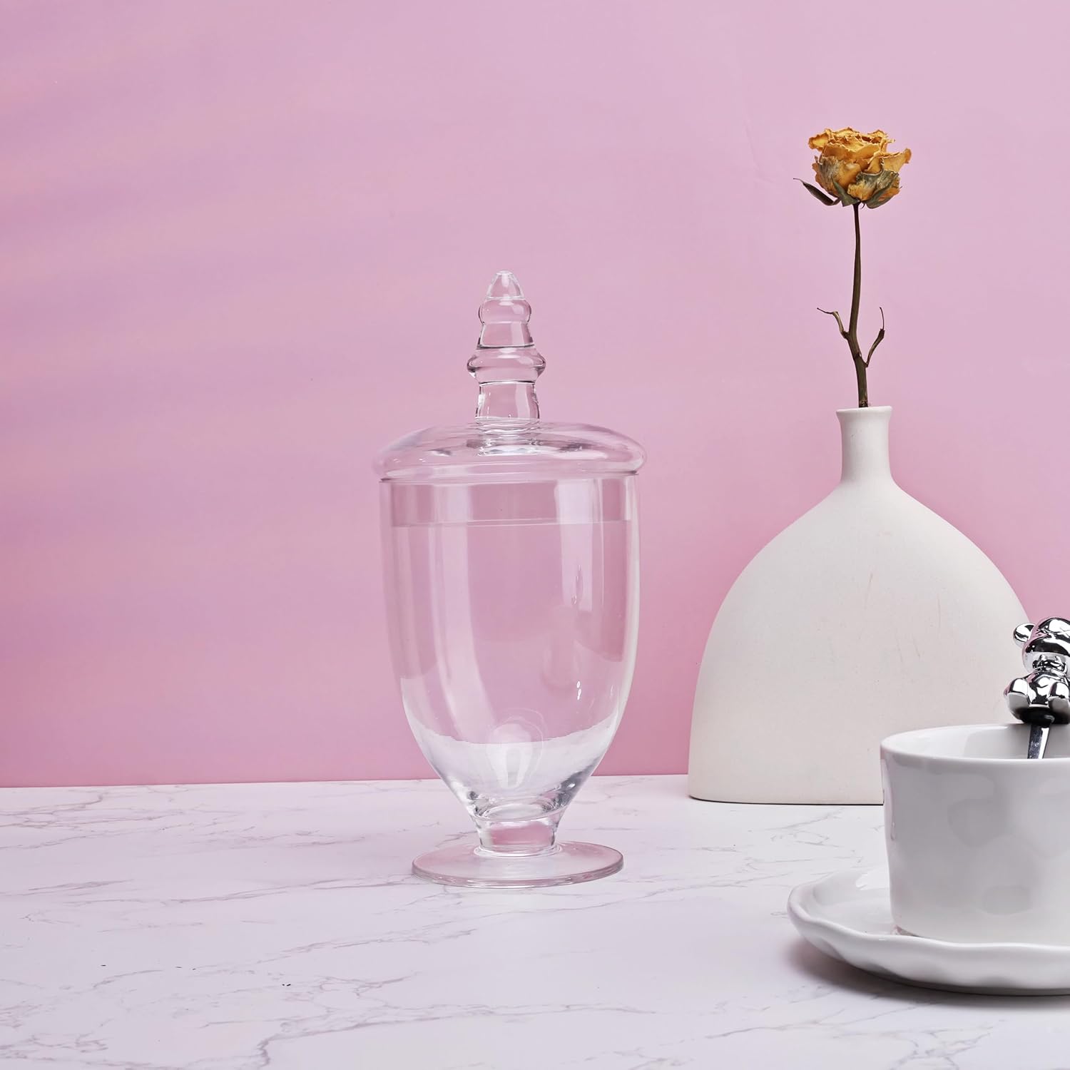 - MODERN ELEGANCE: These glass apothecary jars with lid are perfect for a variety of settings, from bathroom and kitchen storage, to home and venue decoration, garden floral and glass container displays and more. The uses for these decorative glass jars are endless!