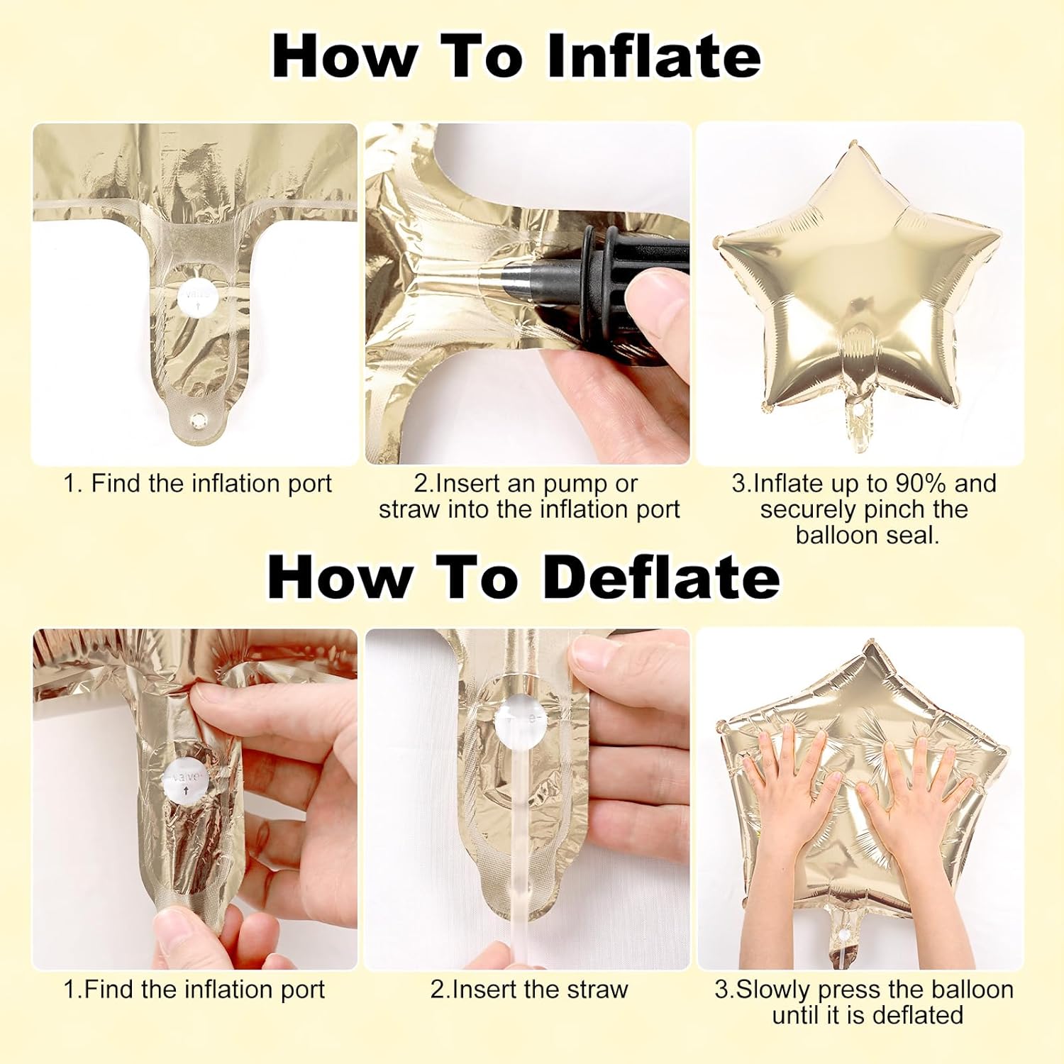 - 💝♻️【Rich & Reusable 18" Foil Balloons】: The rich foil balloons enhance the design sense of the decoration. They can be reused according to the instructions, bring a festive and fun atmosphere to any occasion, time and time again! 🎈🎉(Please place the hand pump under the transparent protective film at the balloon inflation port to inflate. After the activity, insert the attached straw under the protective film and gently press to deflate it for reuse.)