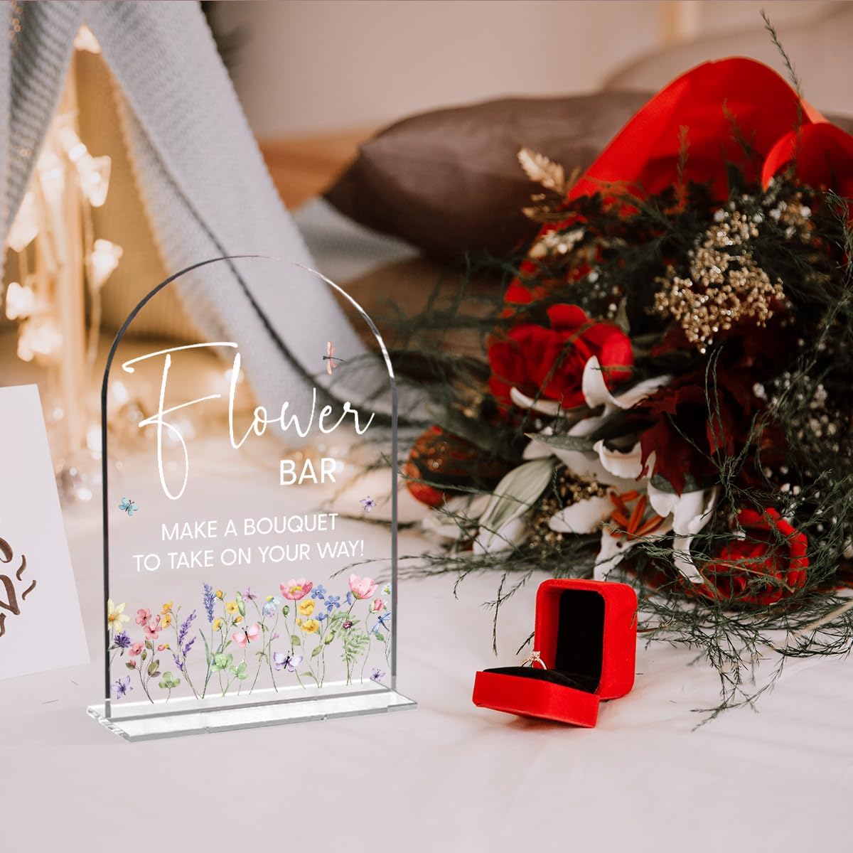 Flower Bar Sign Wedding Decor Clear Acrylic Table Sign for Marriage Parties Anniversaries Reception Cafe Hotel Party Bar Business Event