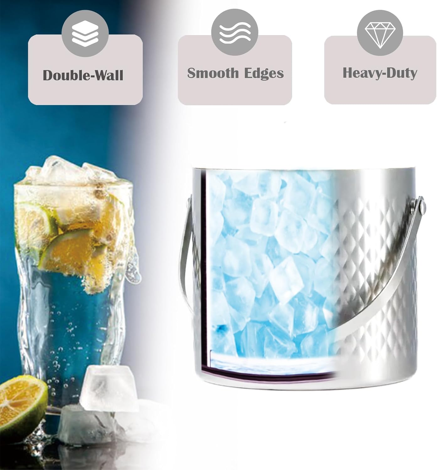 - DOUBLE WALL INSULATION: Keep your drinks refreshingly chilled for longer! Our Hammered Insulated Ice Bucket features advanced insulation technology that prevents ice from melting quickly, making it the perfect addition to your cocktail bar parties.